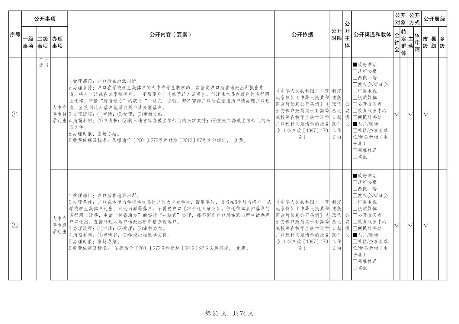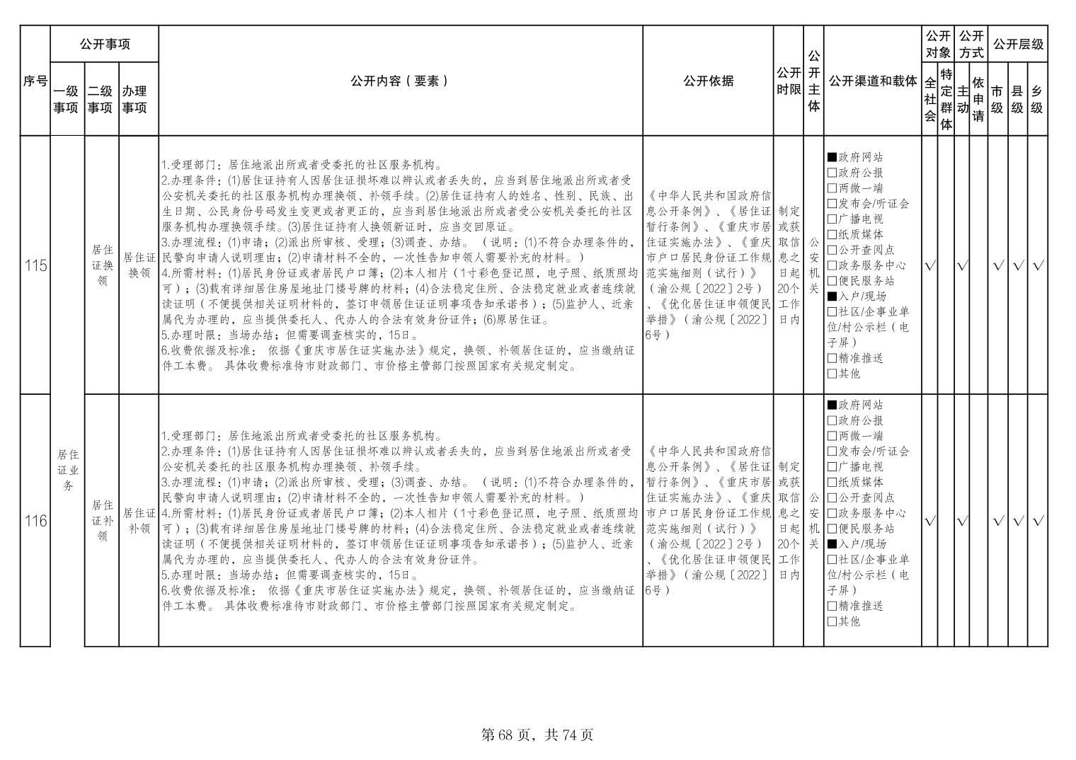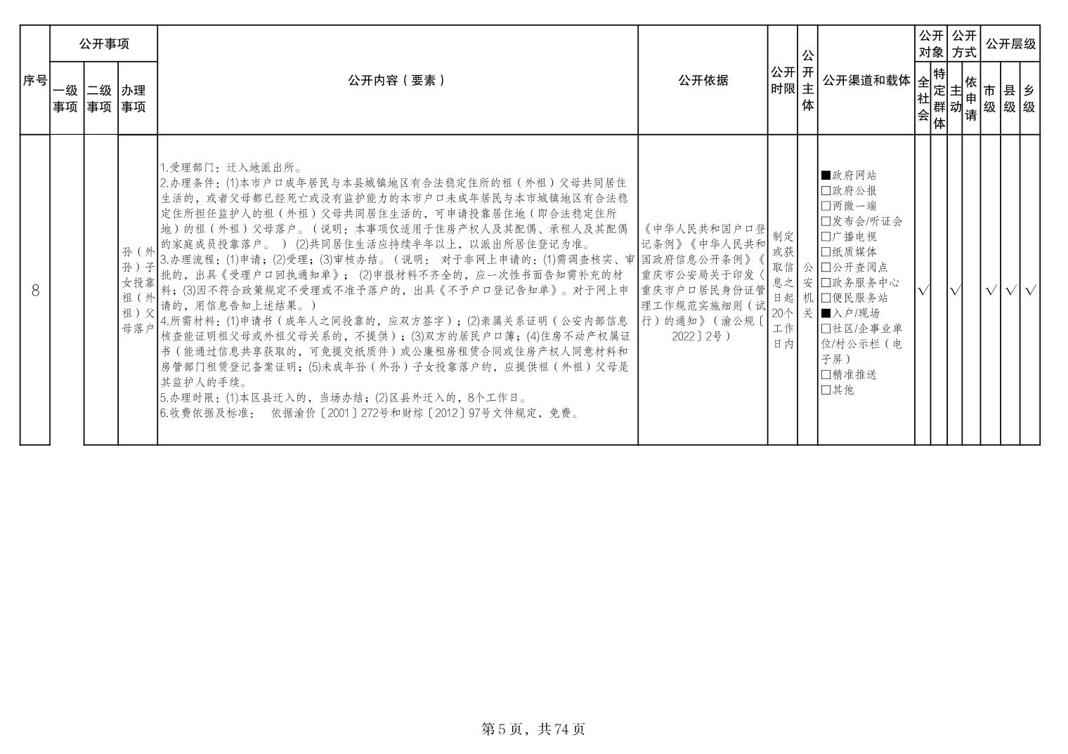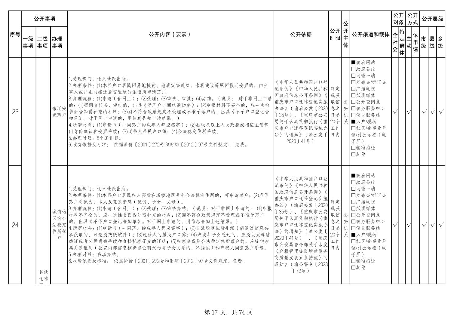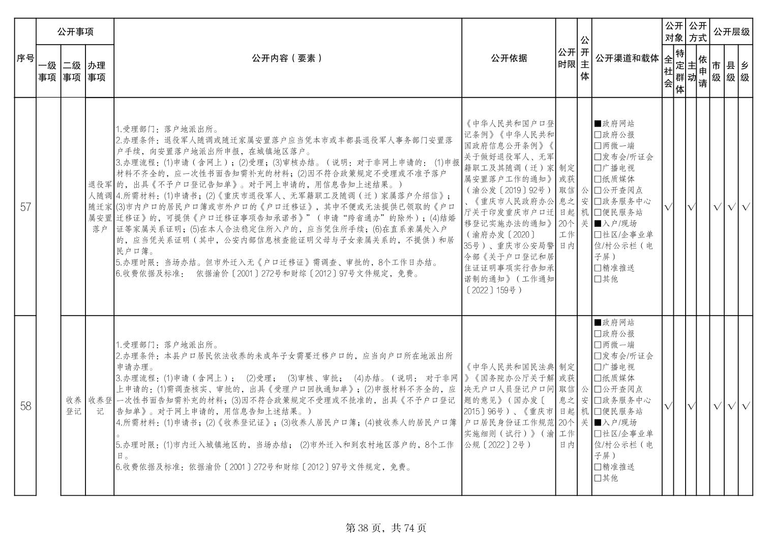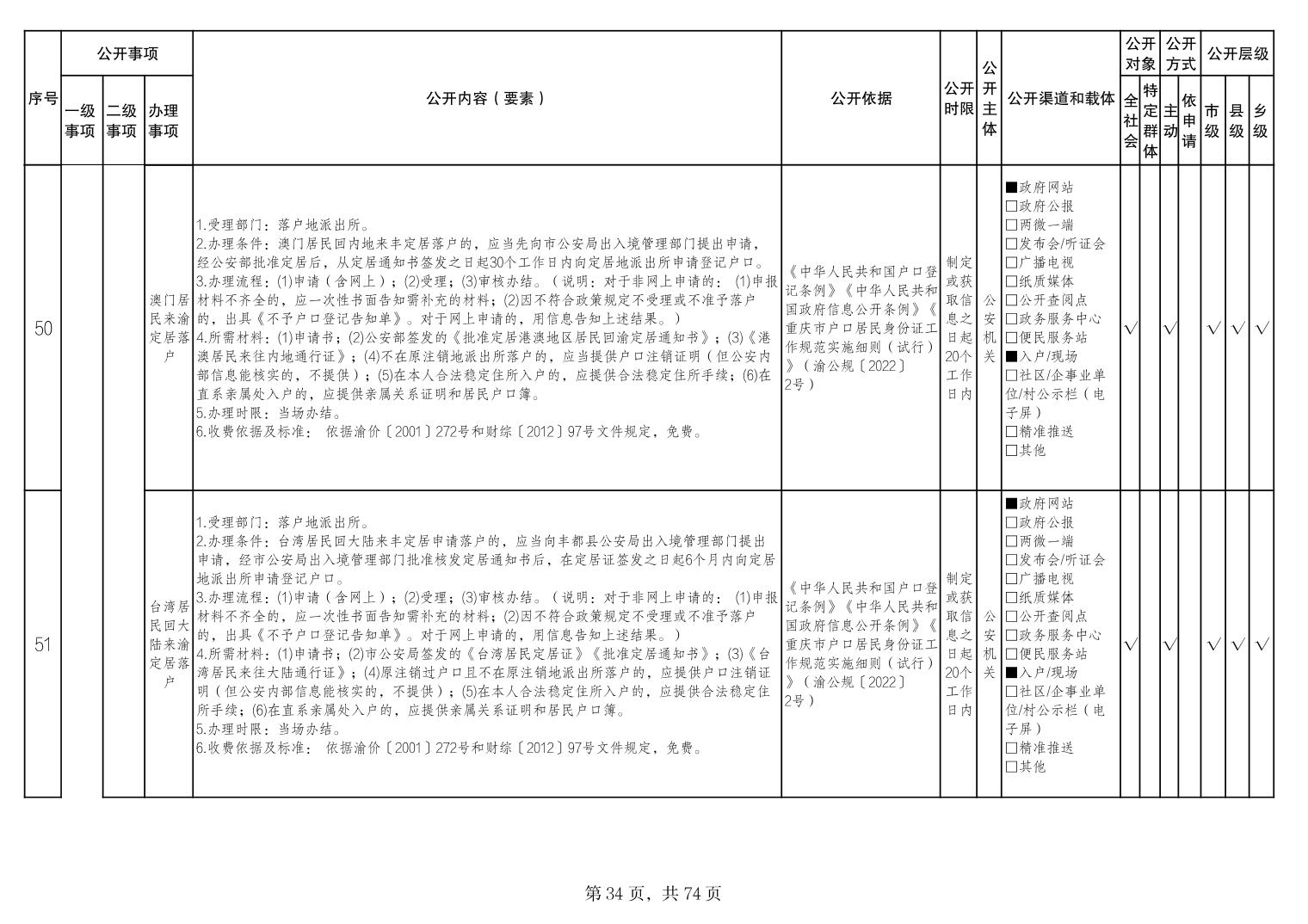 重庆市丰都县户籍管理领域基层政务公开标准目录