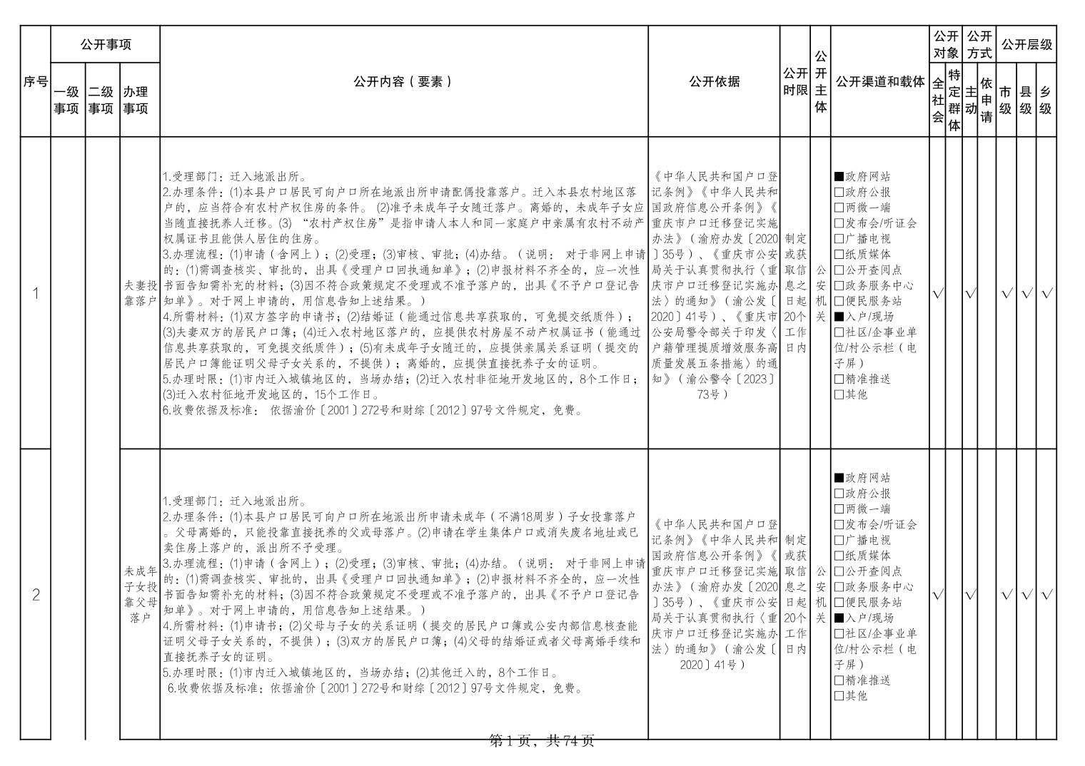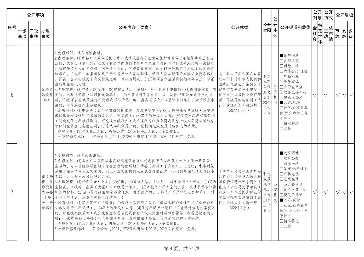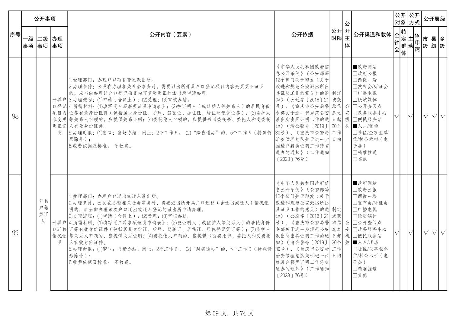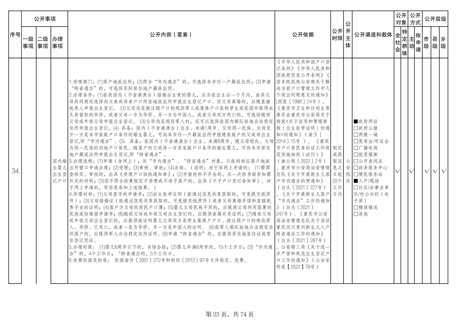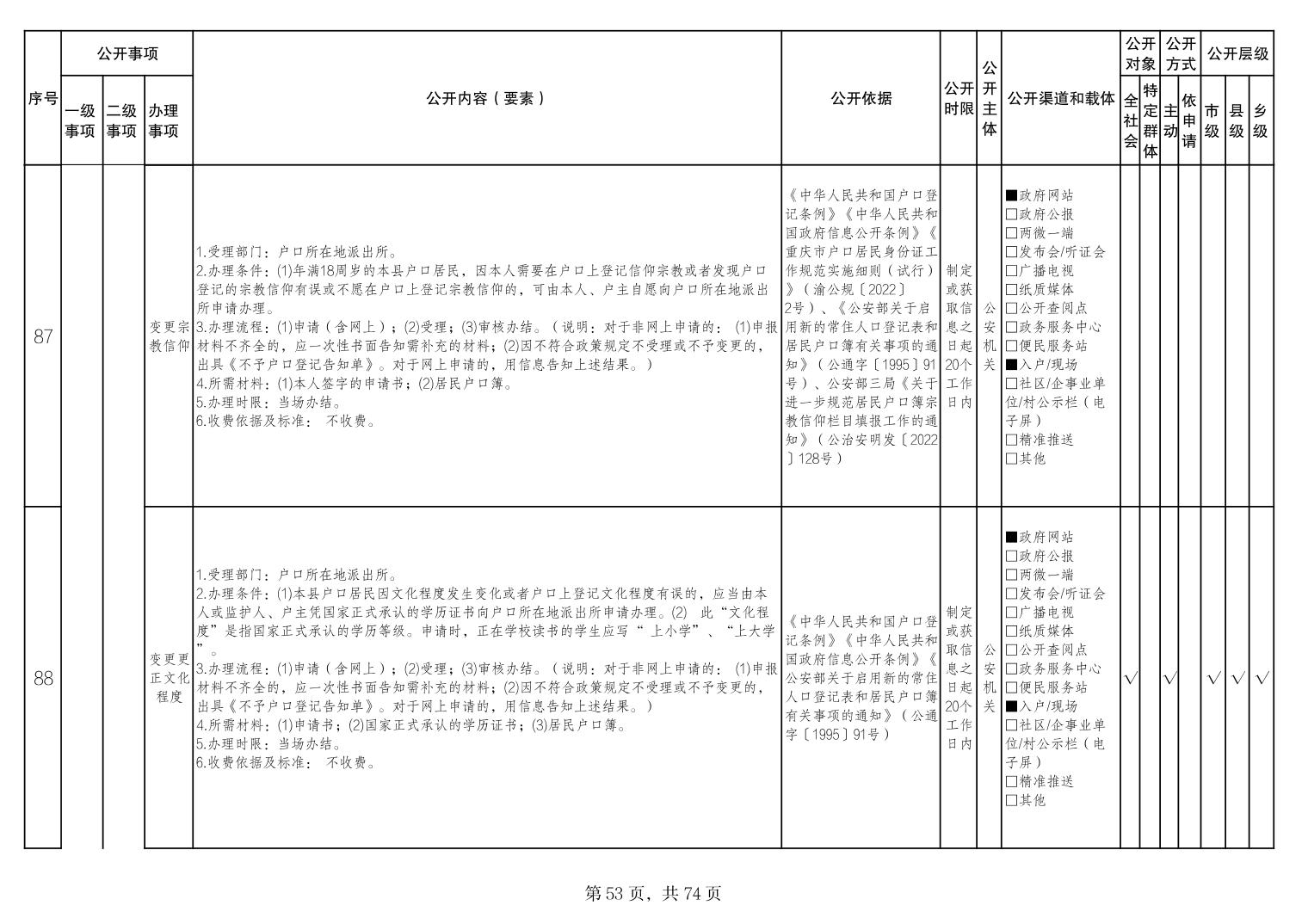 重庆市丰都县户籍管理领域基层政务公开标准目录