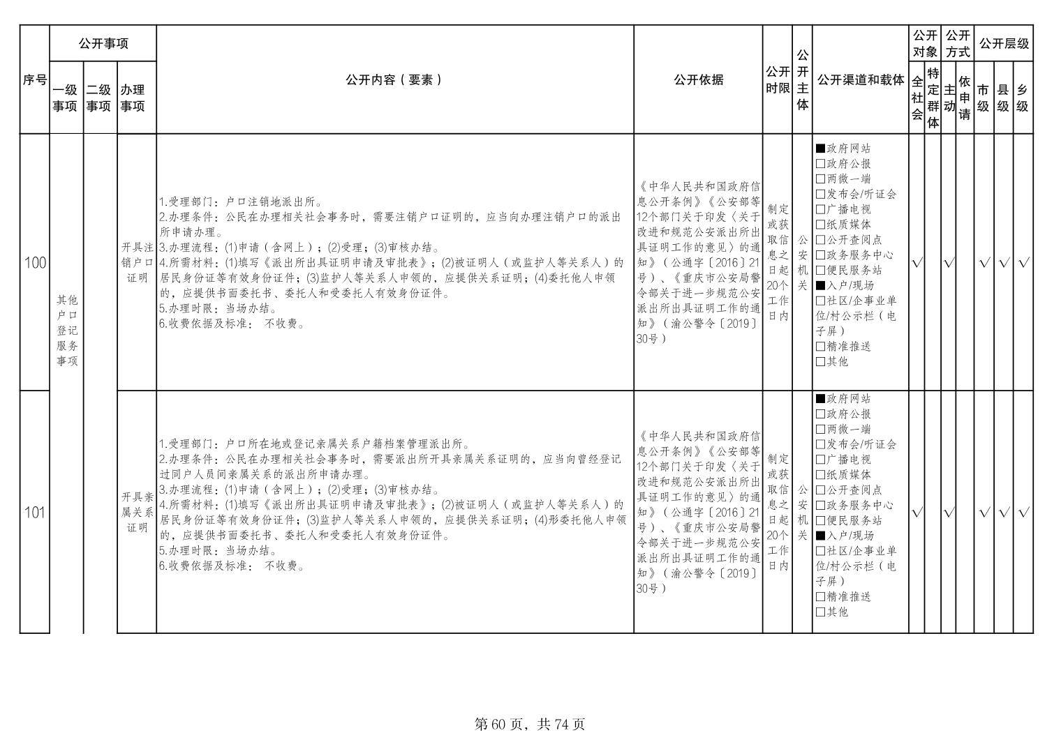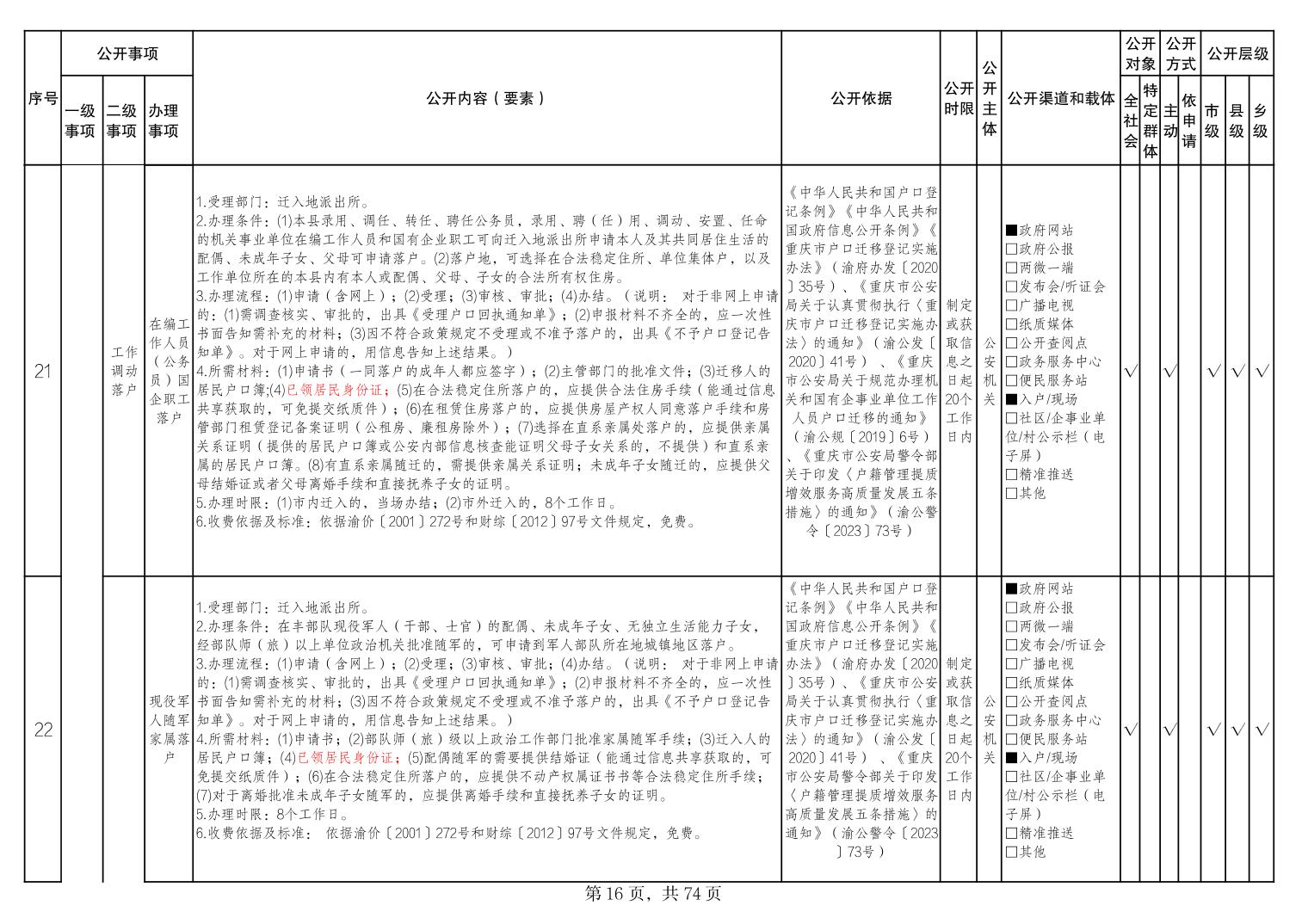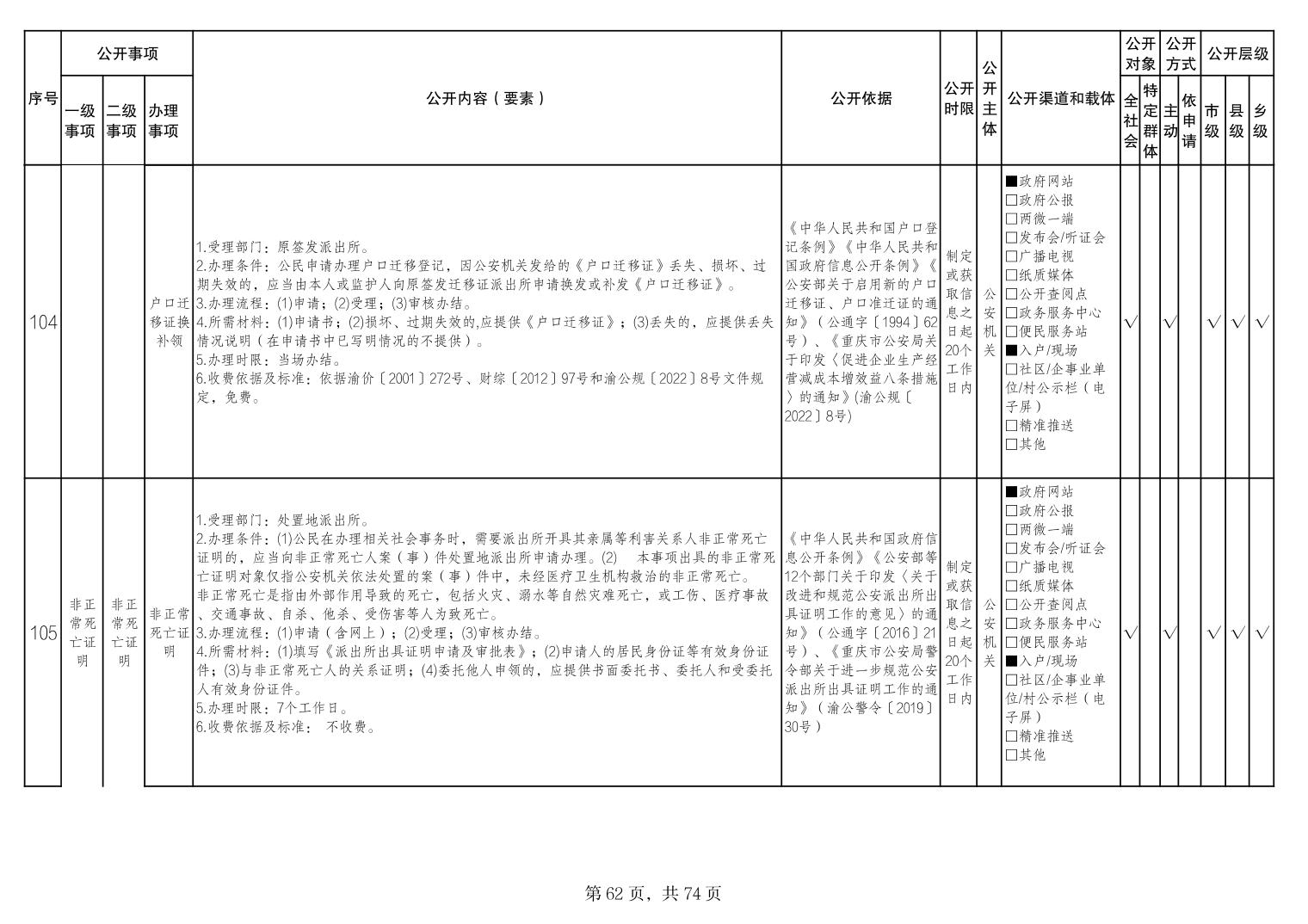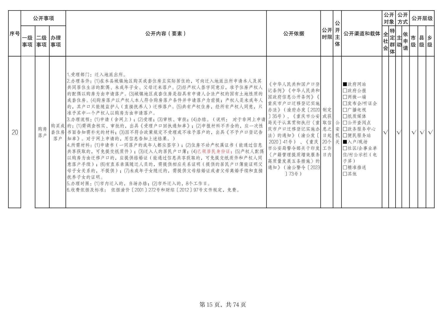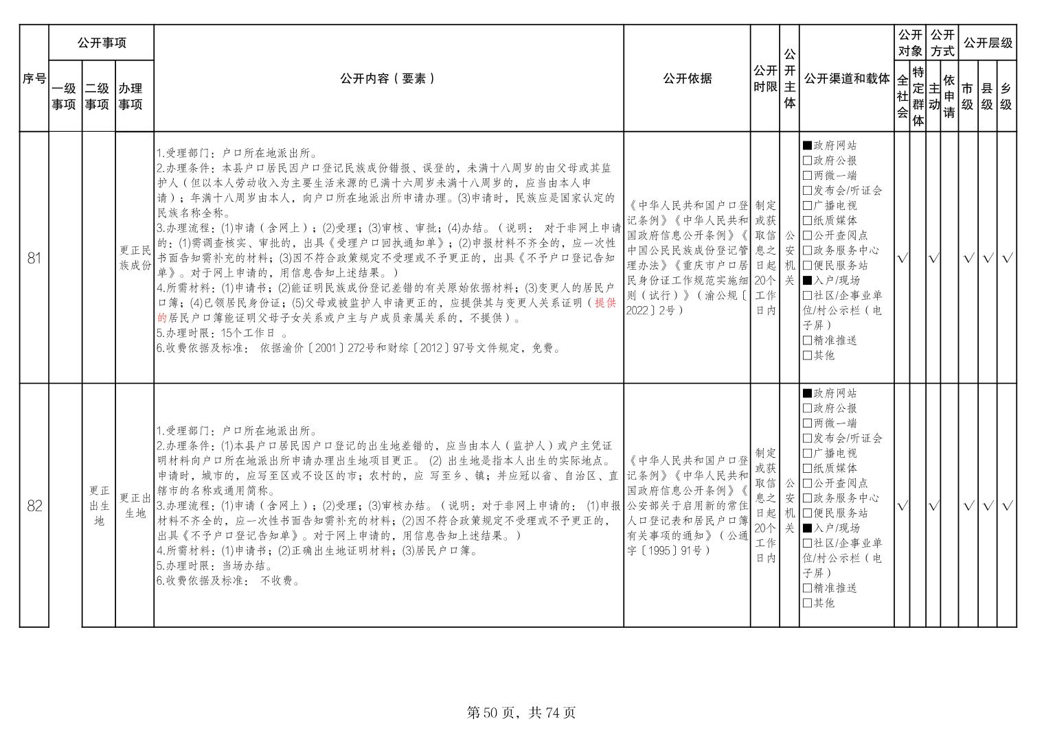 重庆市丰都县户籍管理领域基层政务公开标准目录