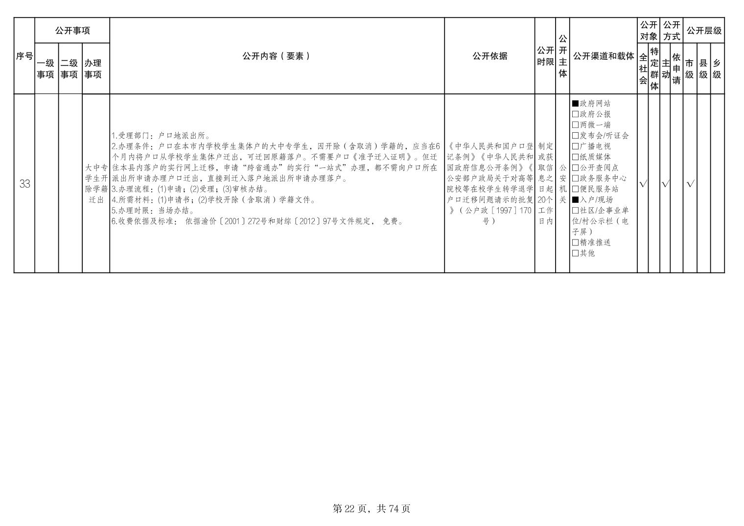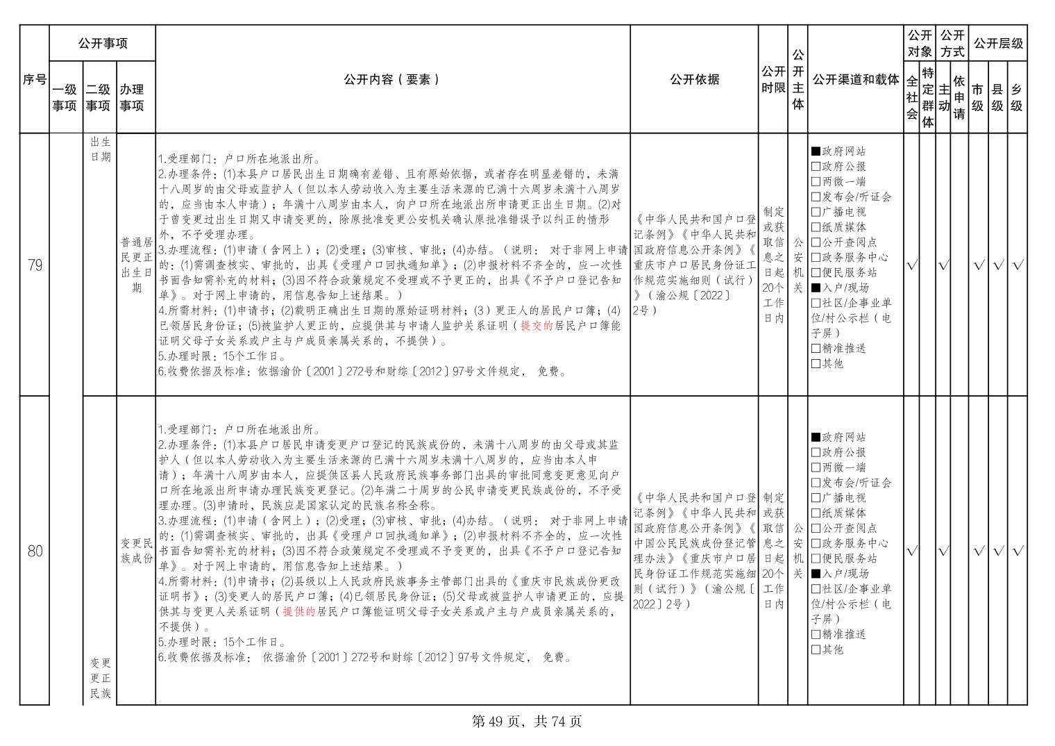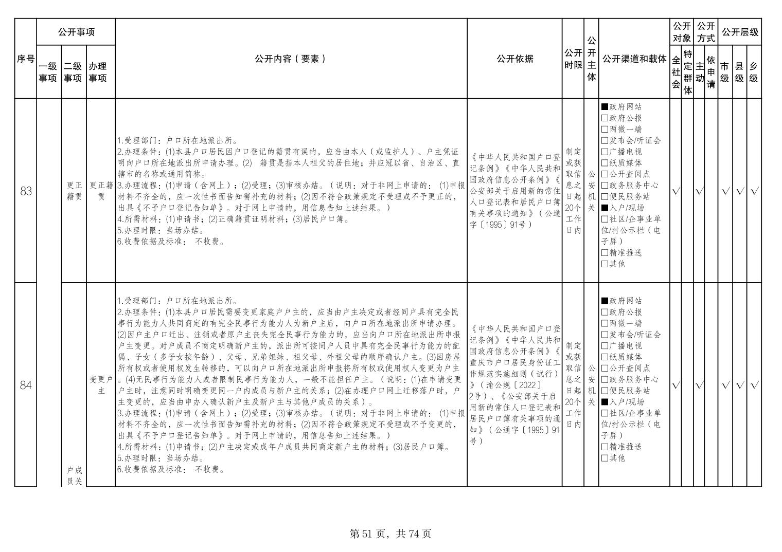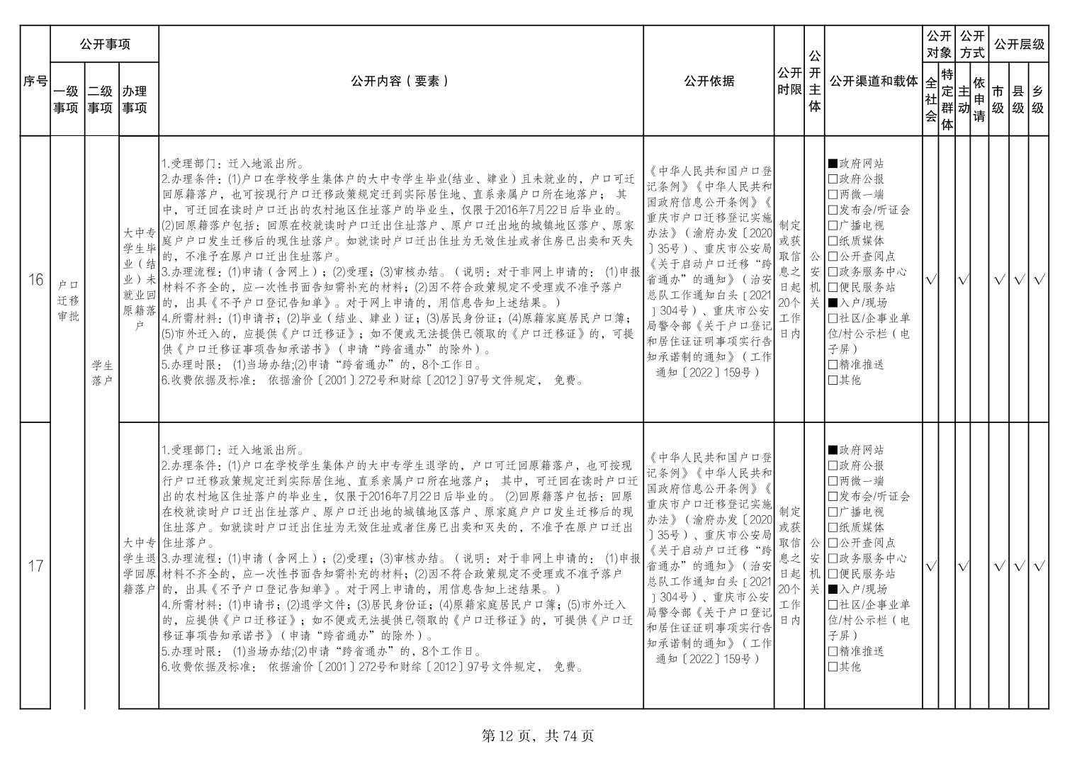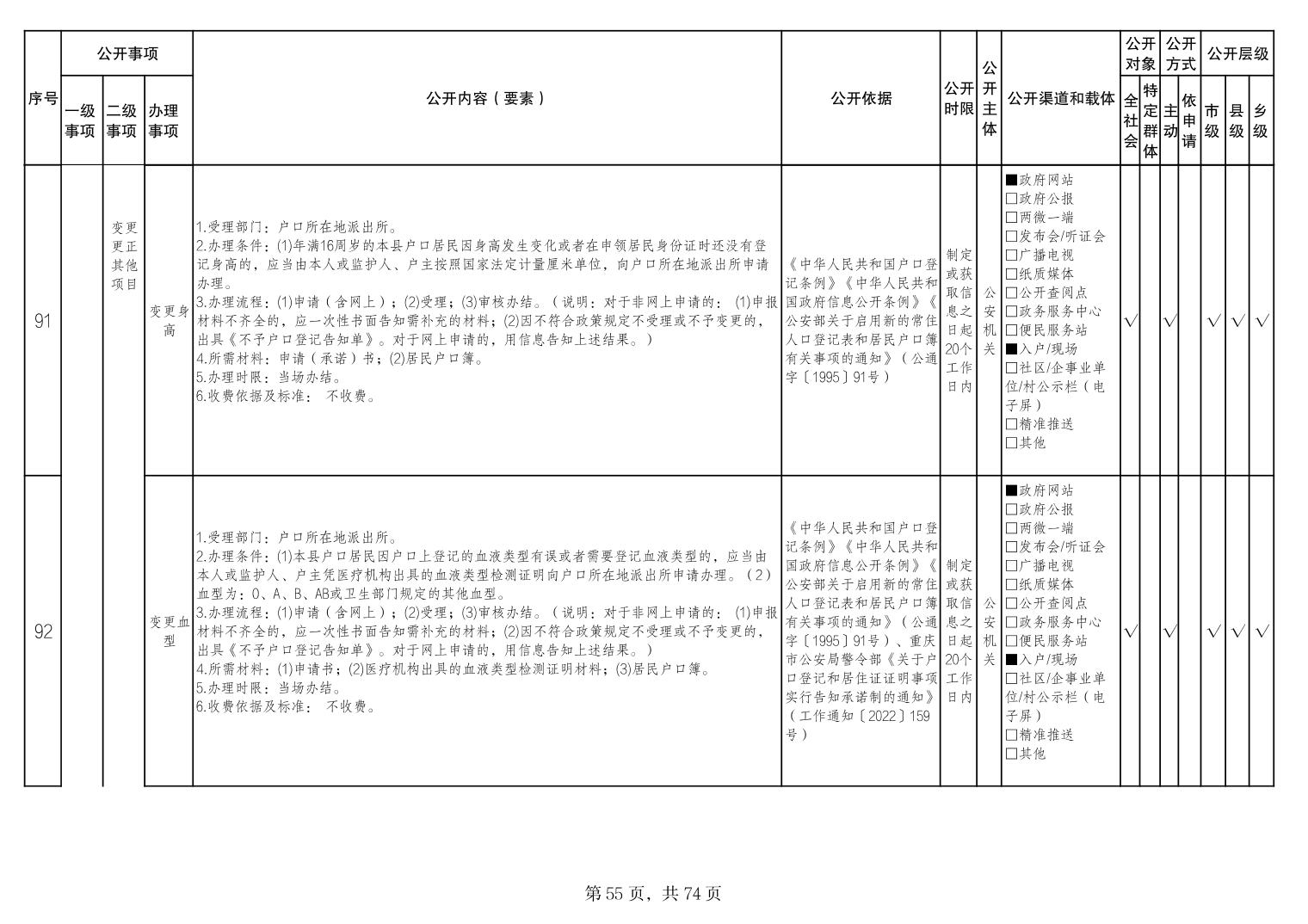 重庆市丰都县户籍管理领域基层政务公开标准目录