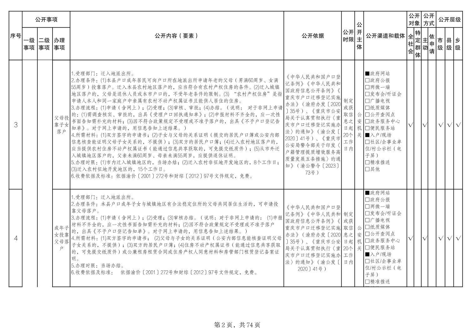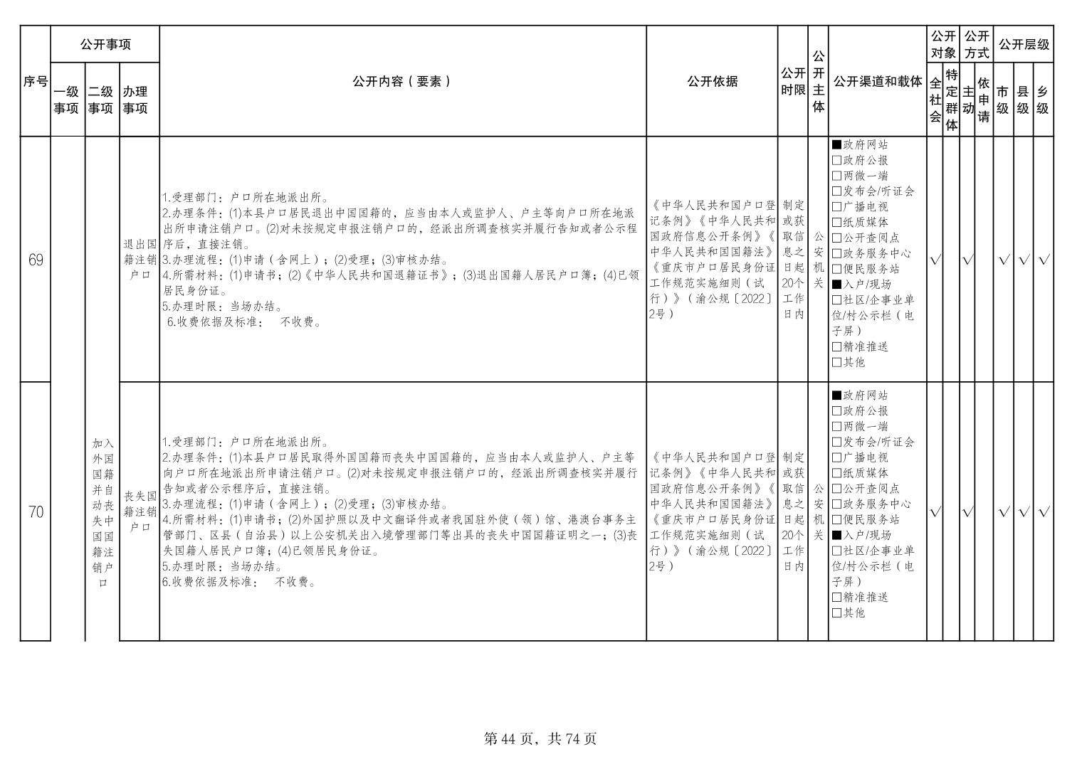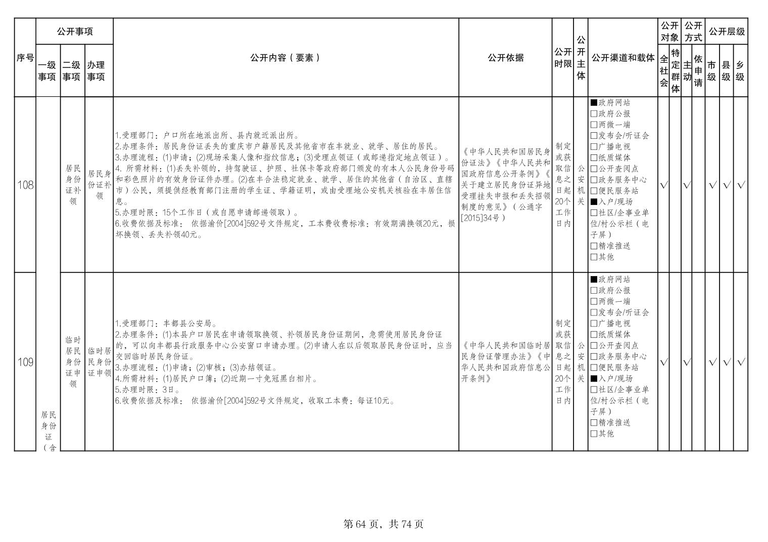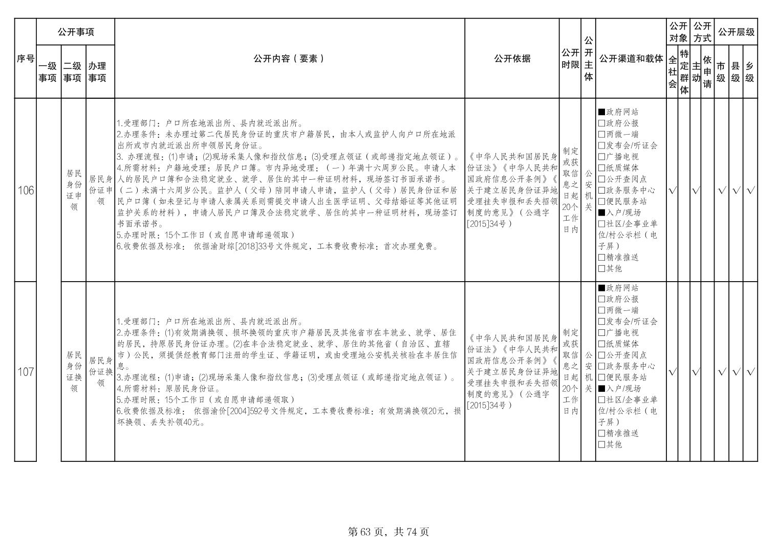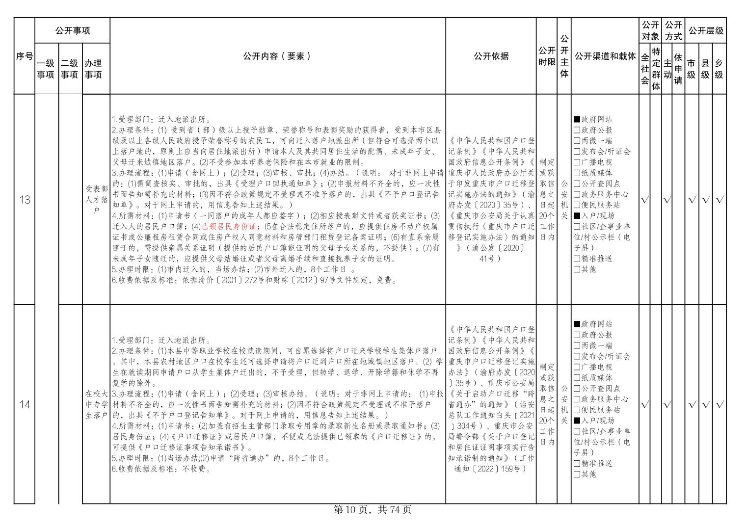 重庆市丰都县户籍管理领域基层政务公开标准目录
