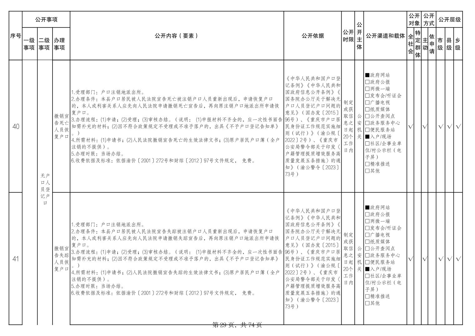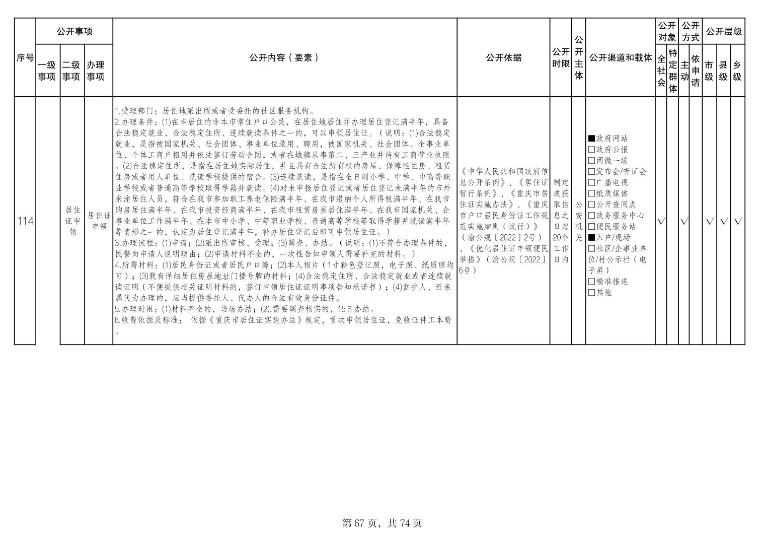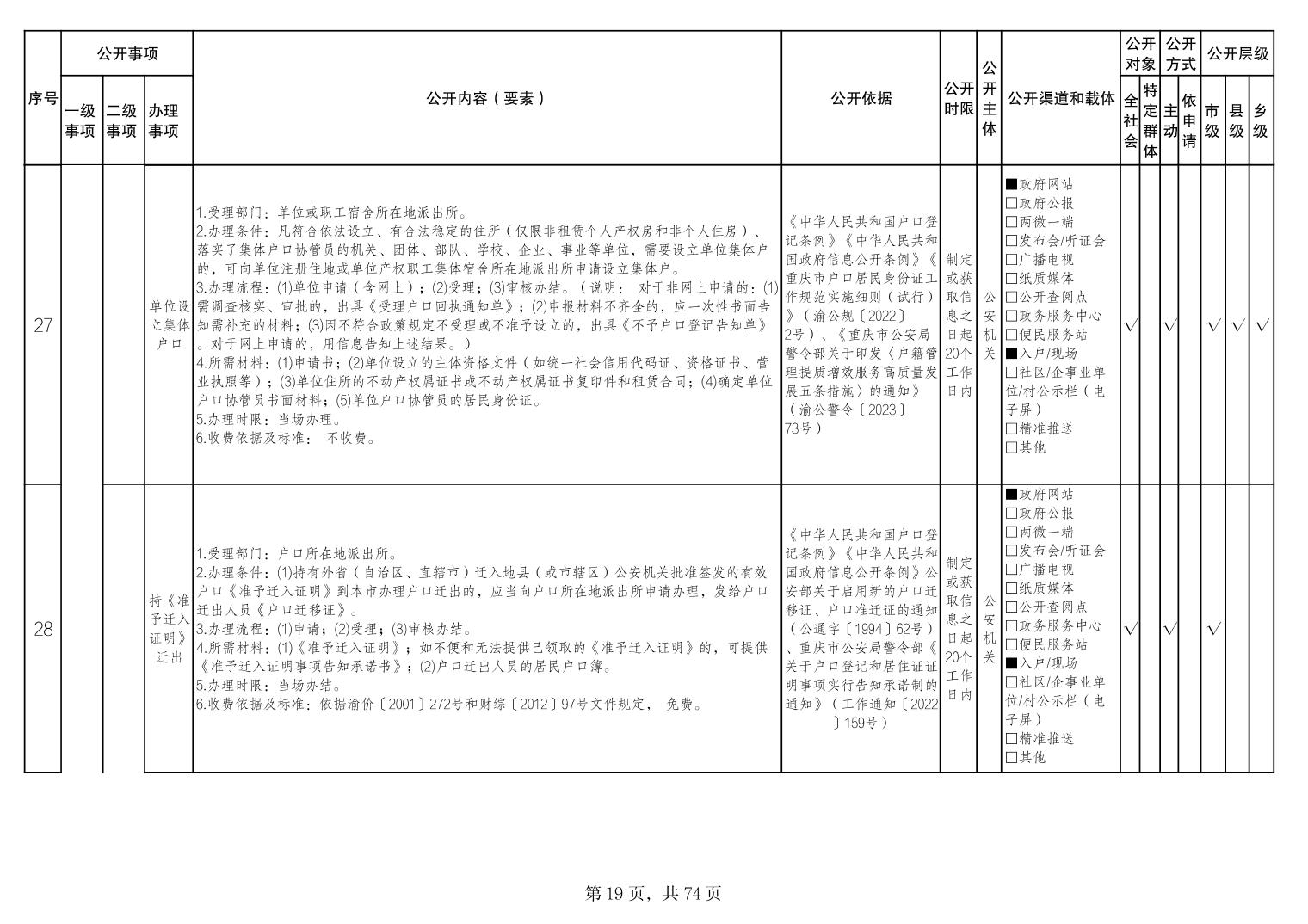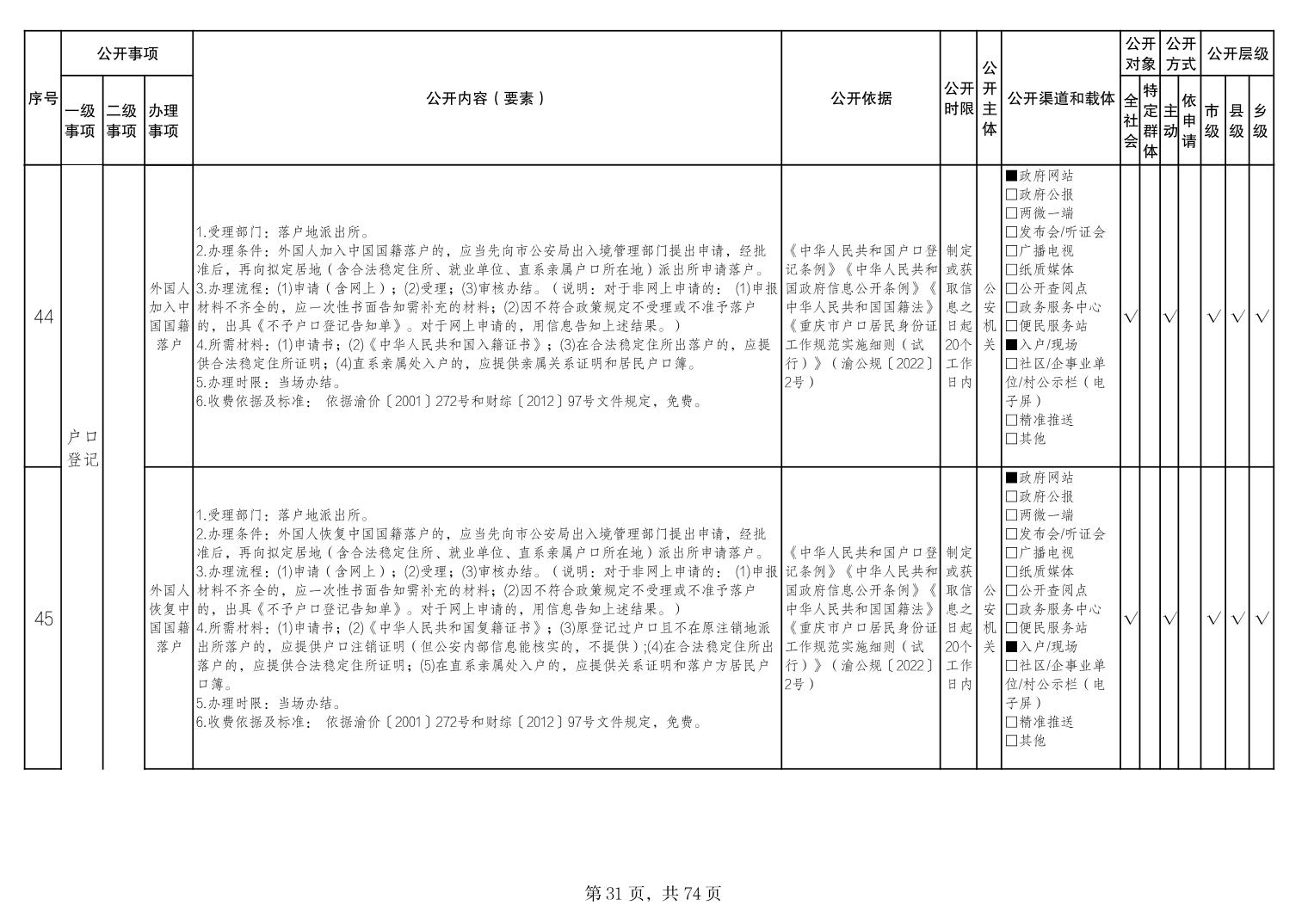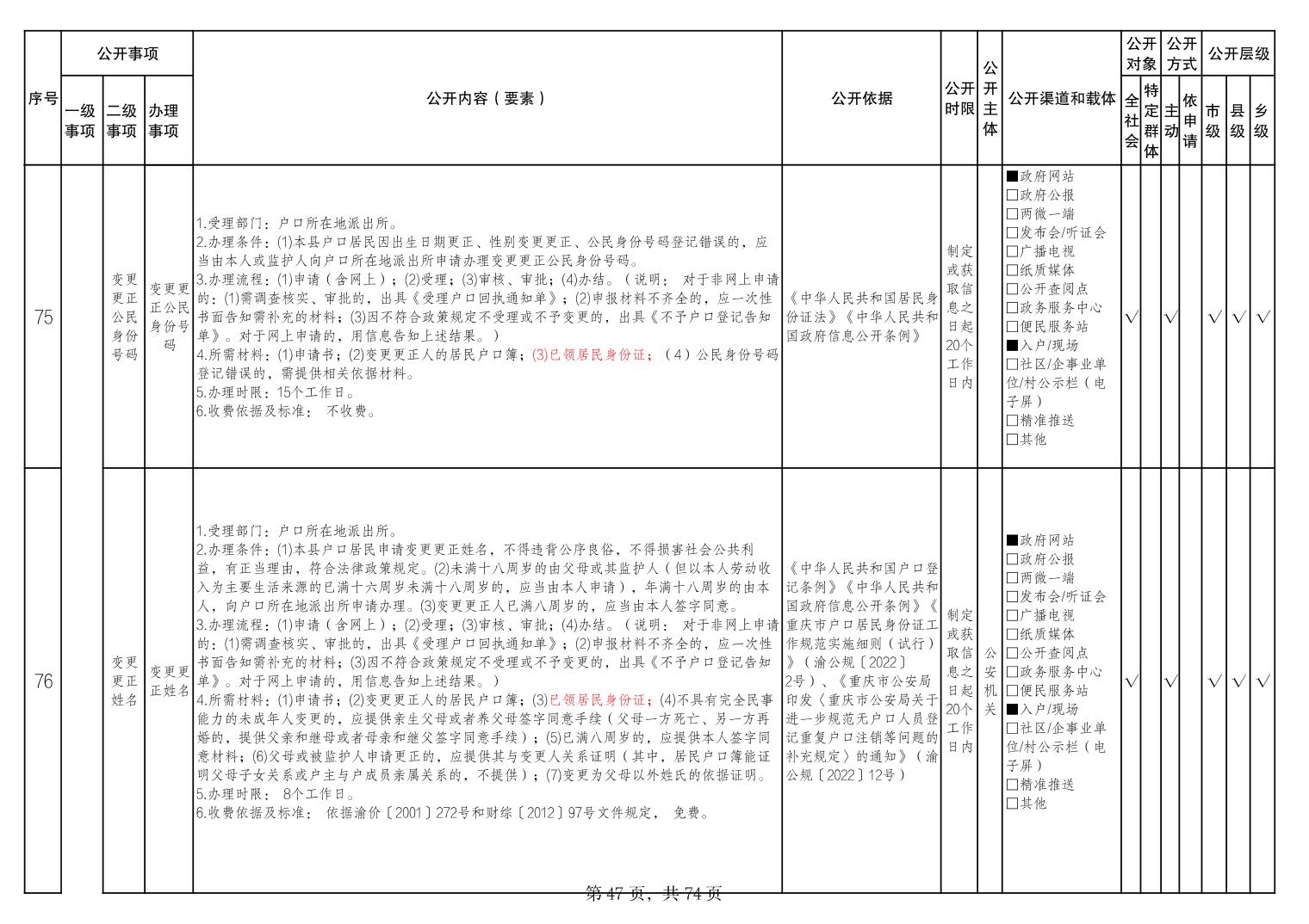 重庆市丰都县户籍管理领域基层政务公开标准目录