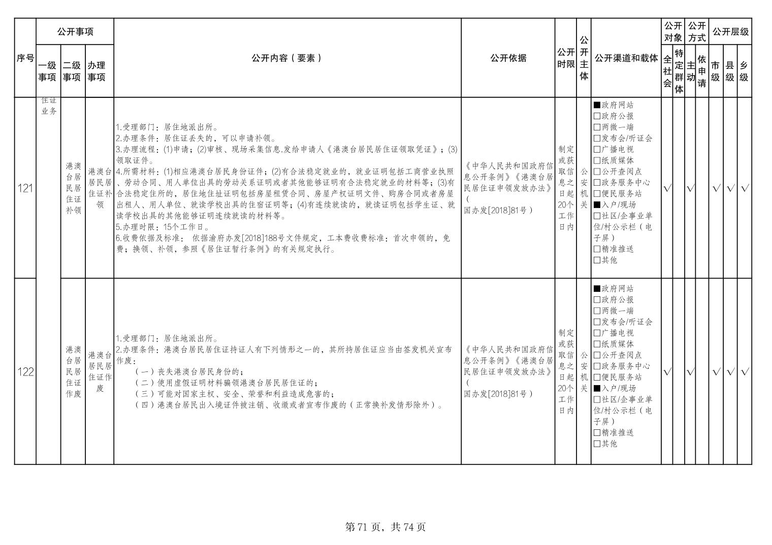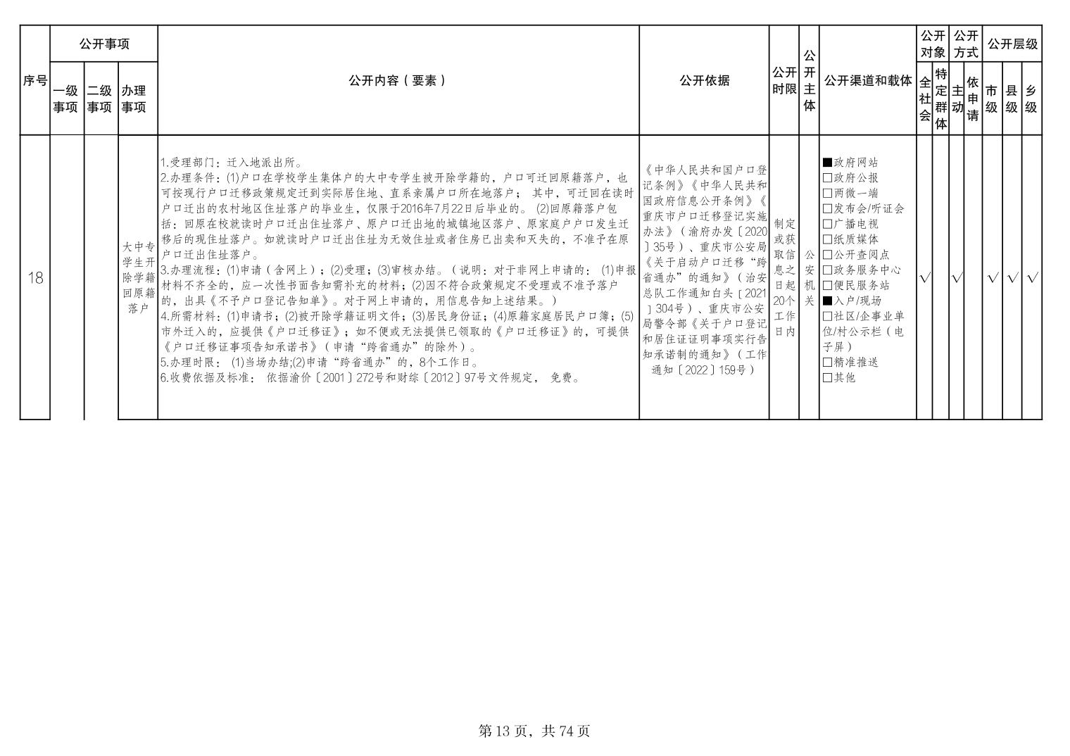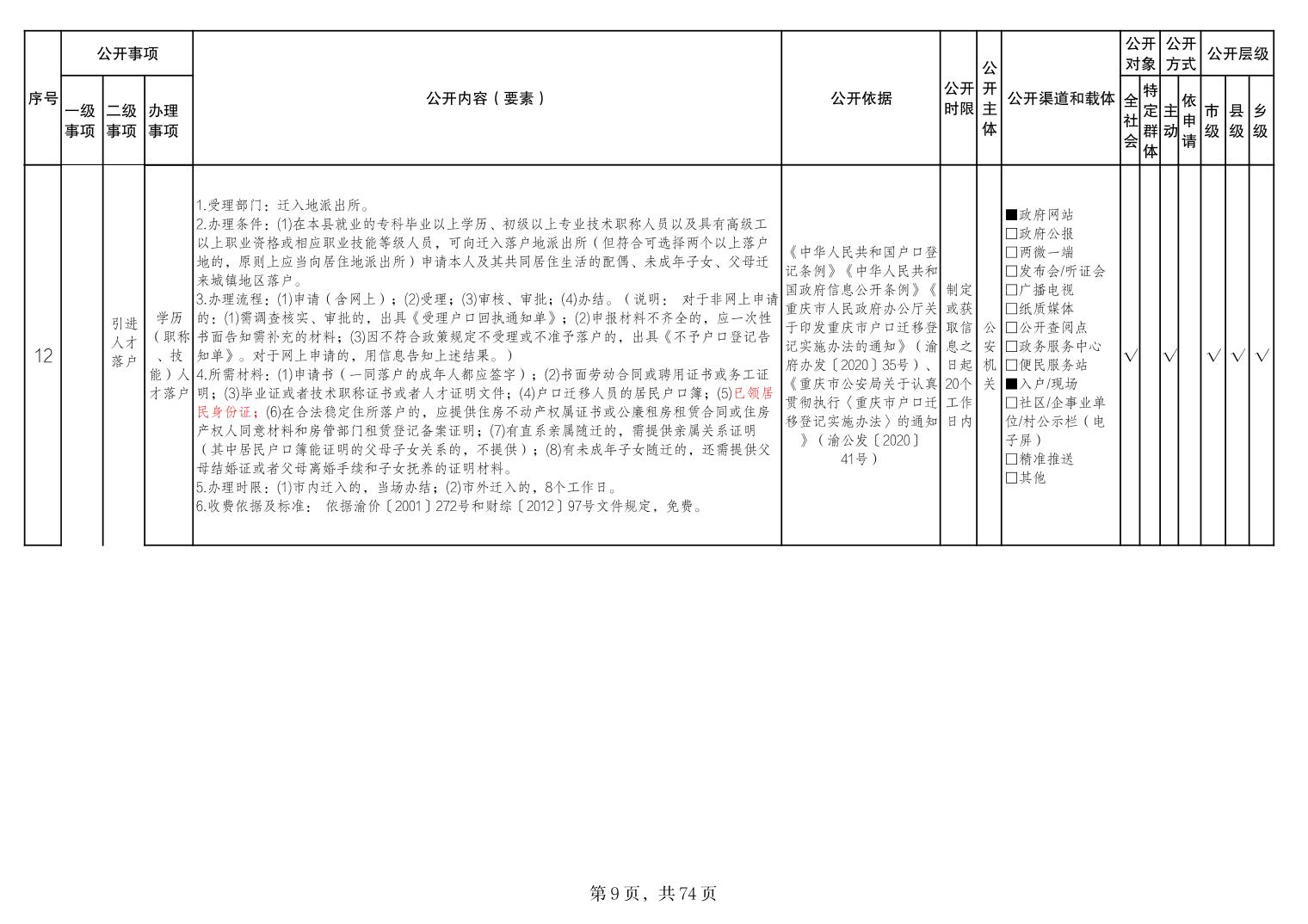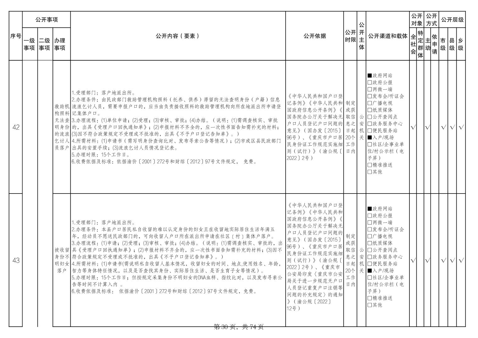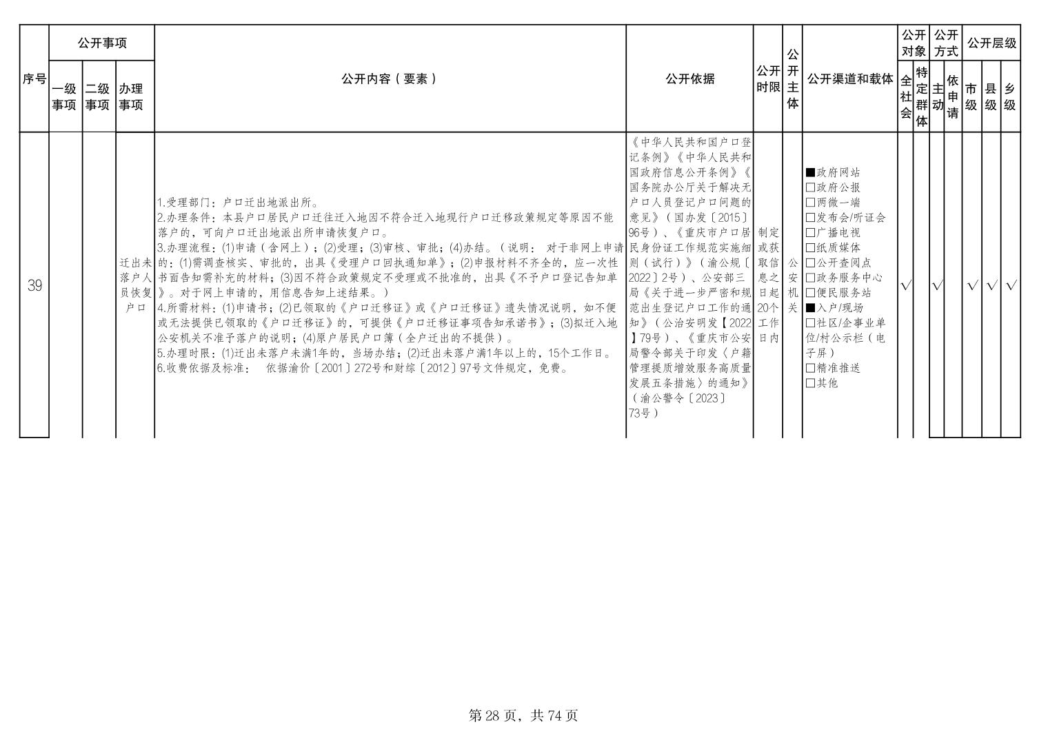重庆市丰都县户籍管理领域基层政务公开标准目录