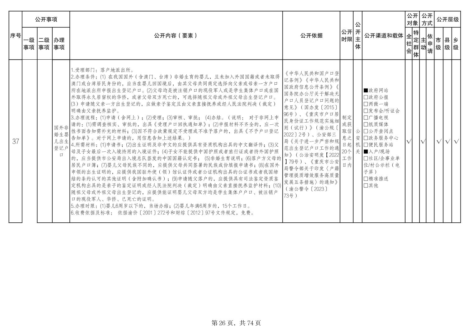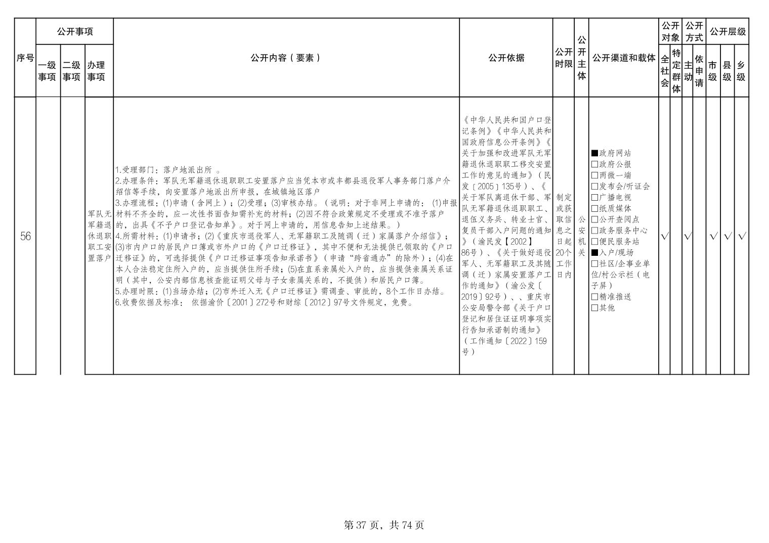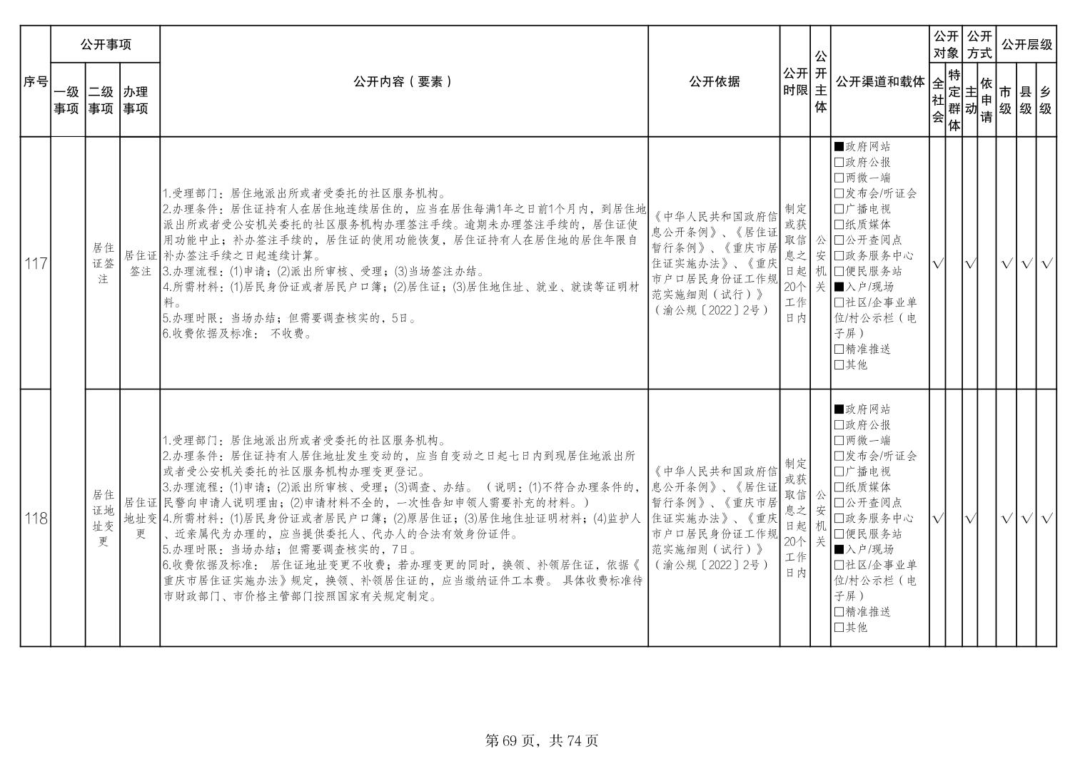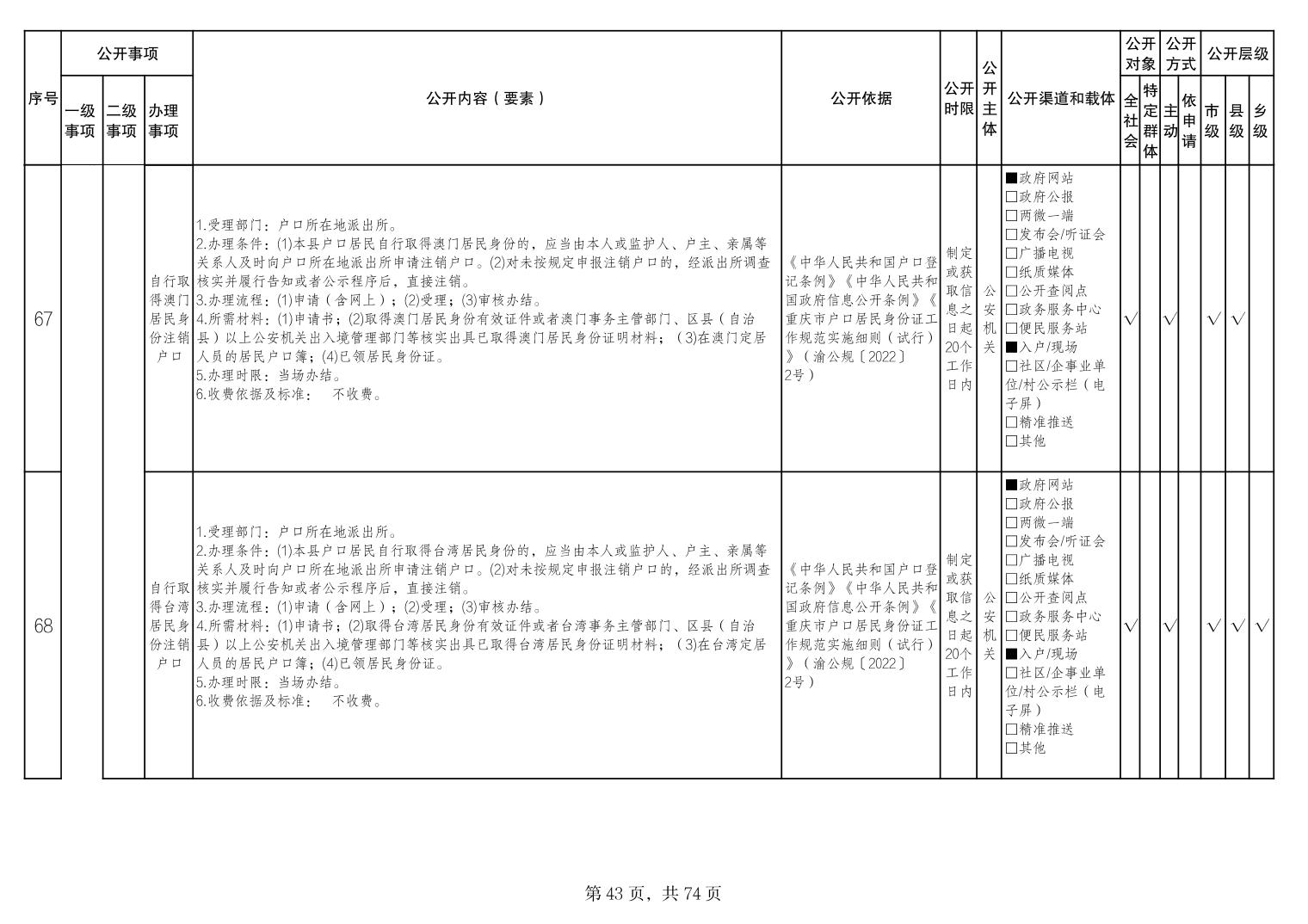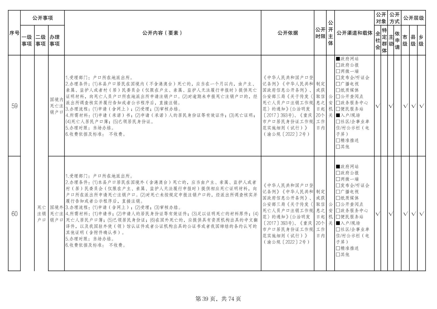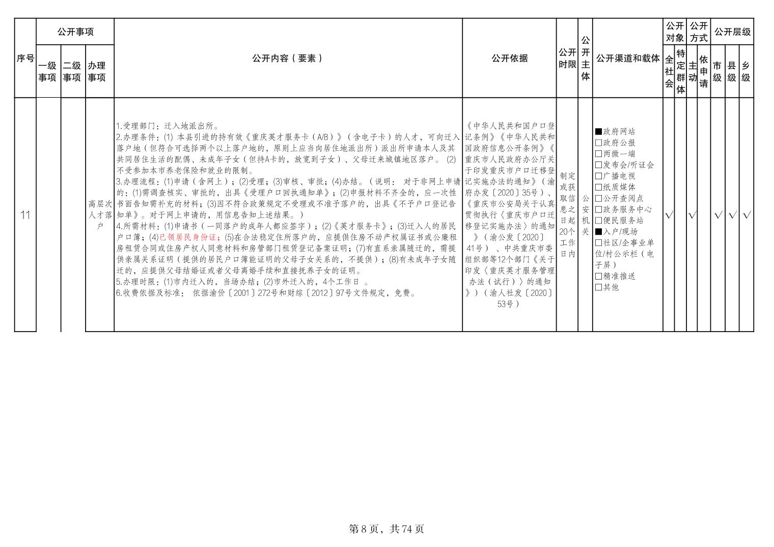 重庆市丰都县户籍管理领域基层政务公开标准目录