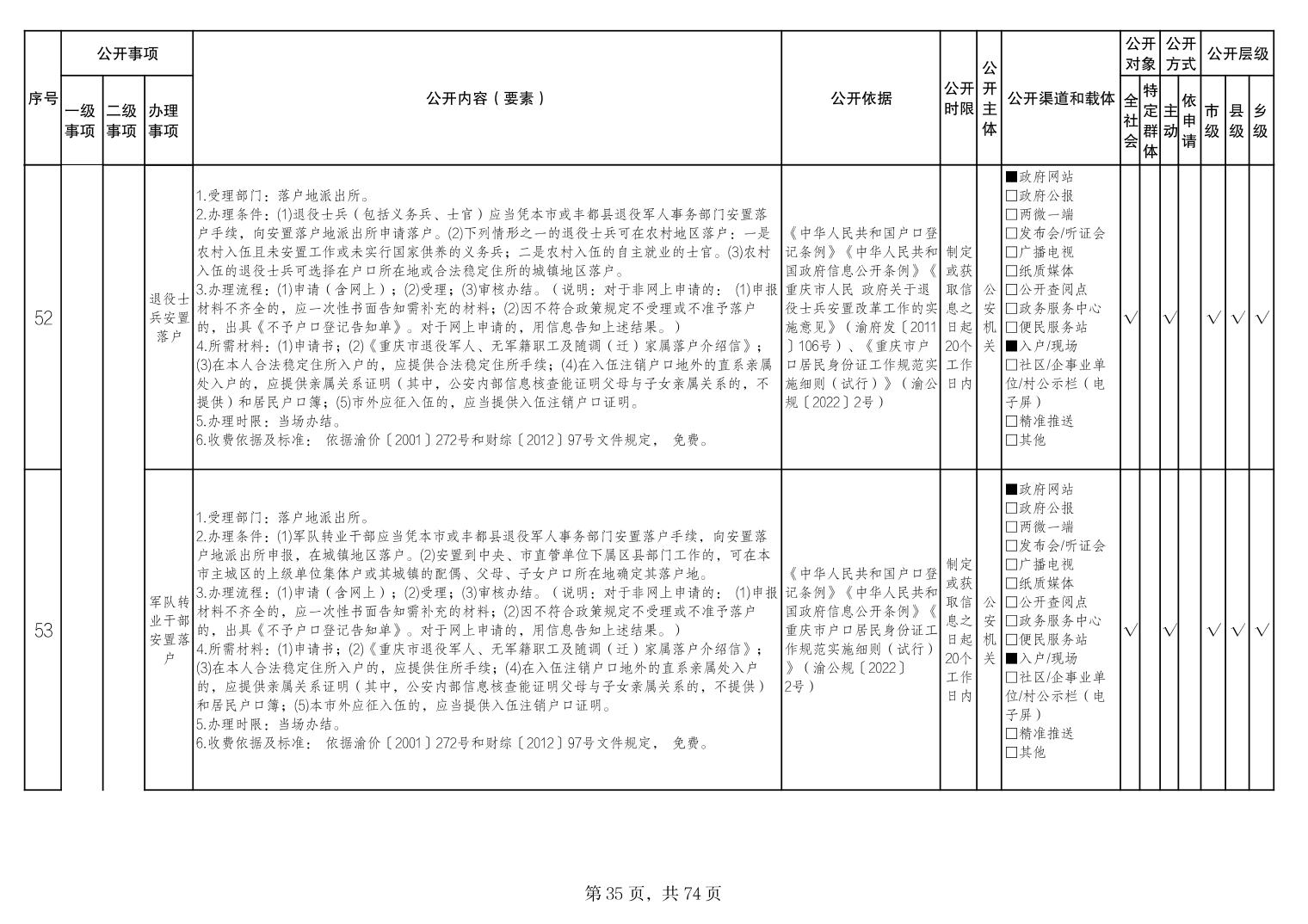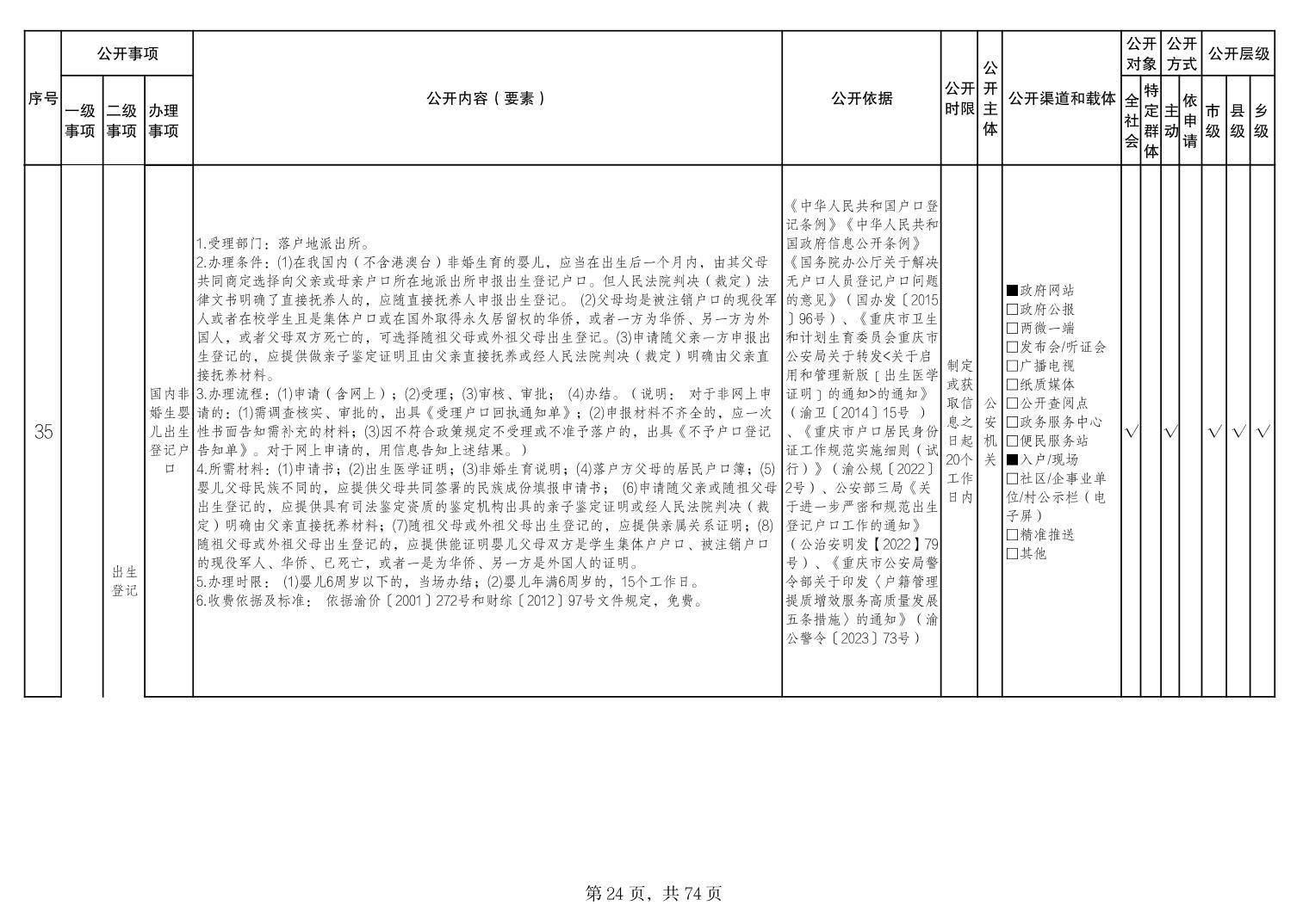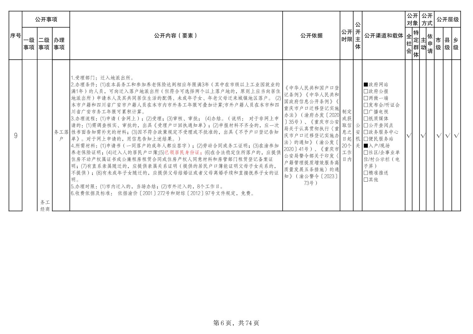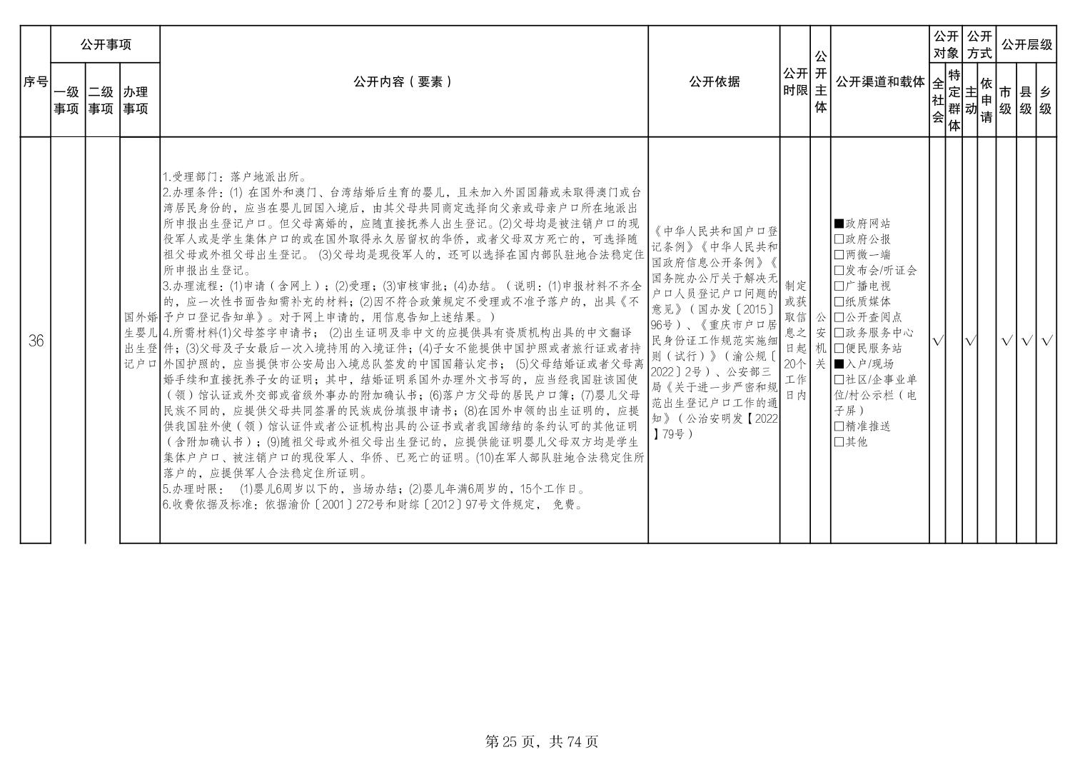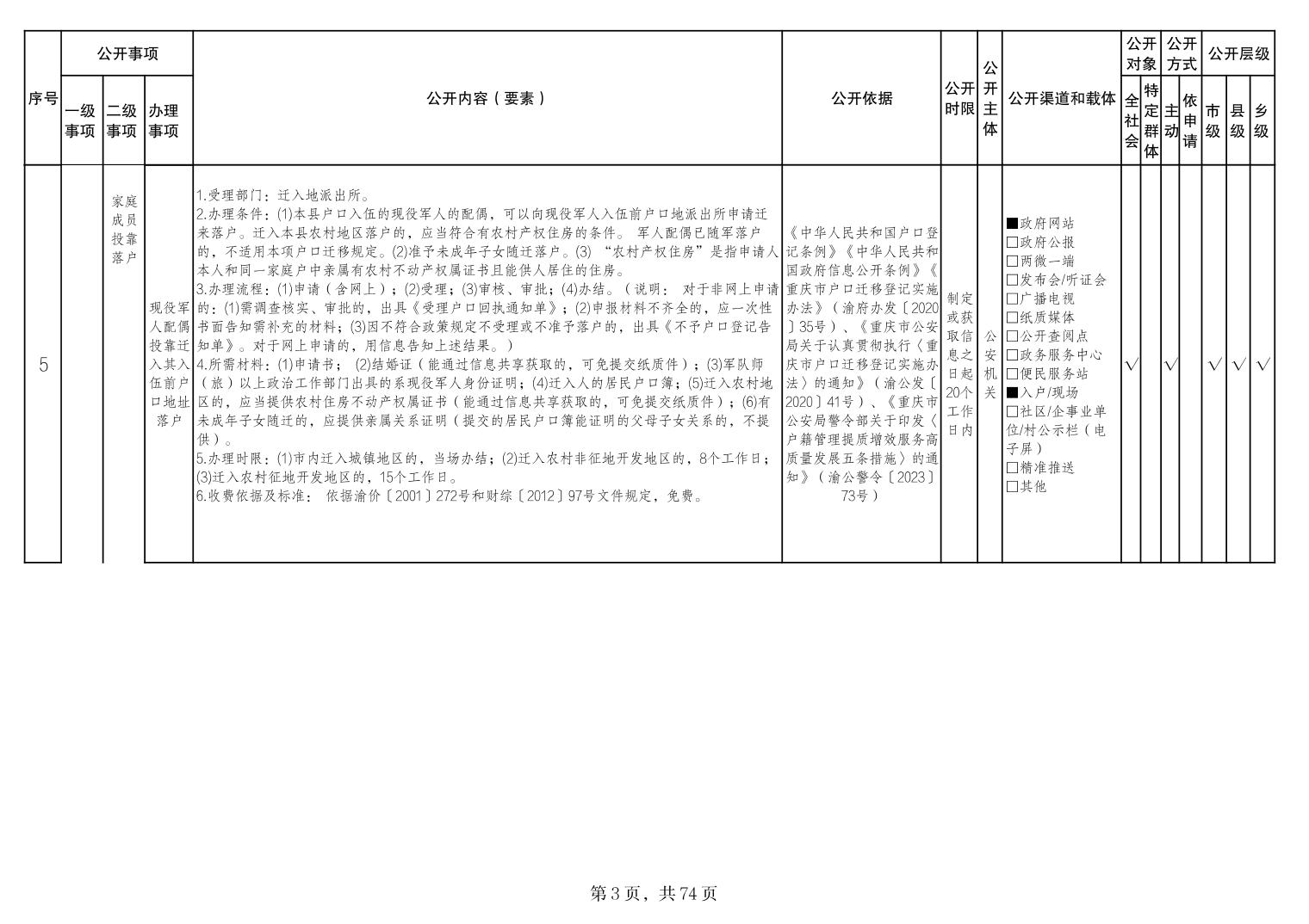 重庆市丰都县户籍管理领域基层政务公开标准目录