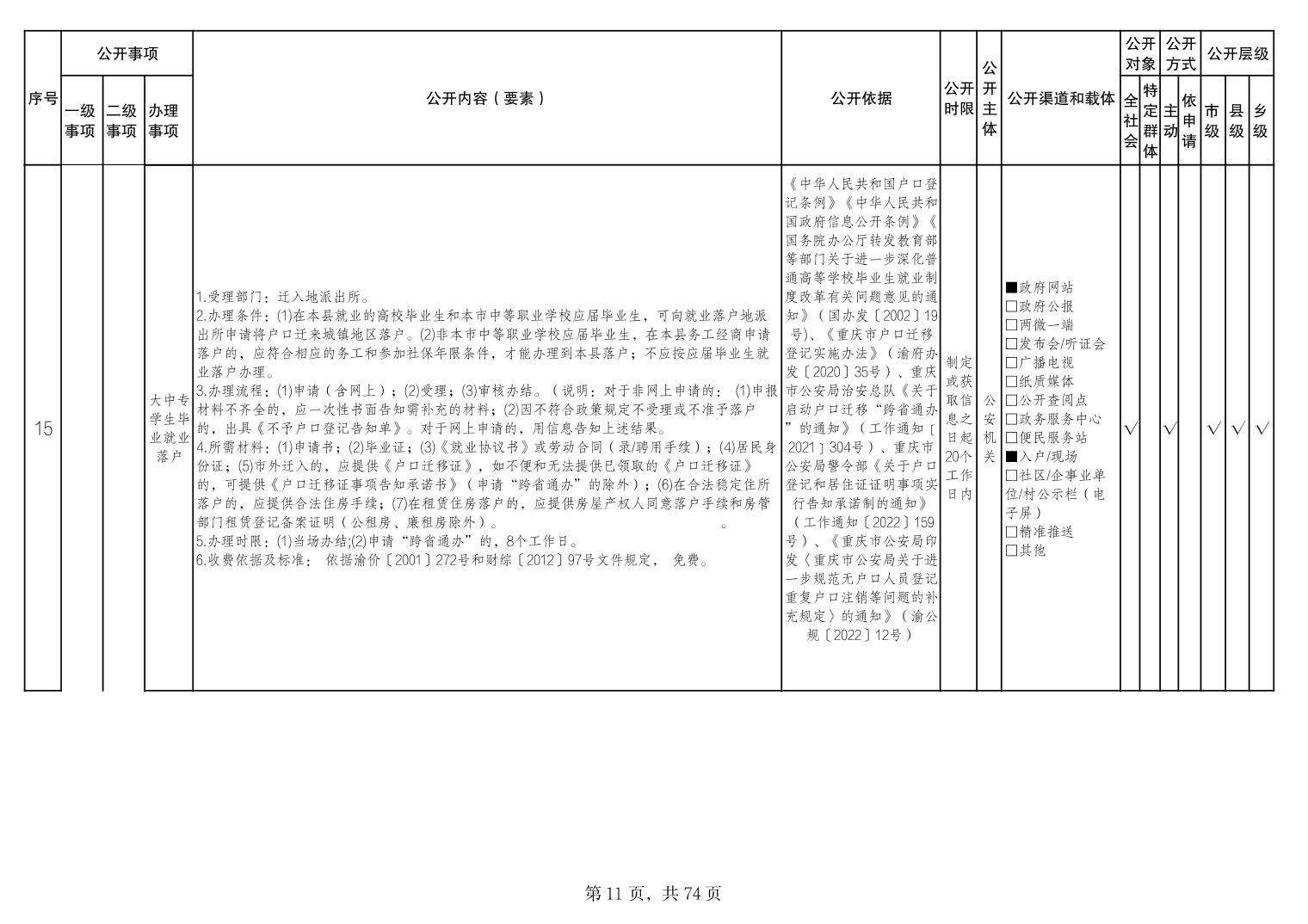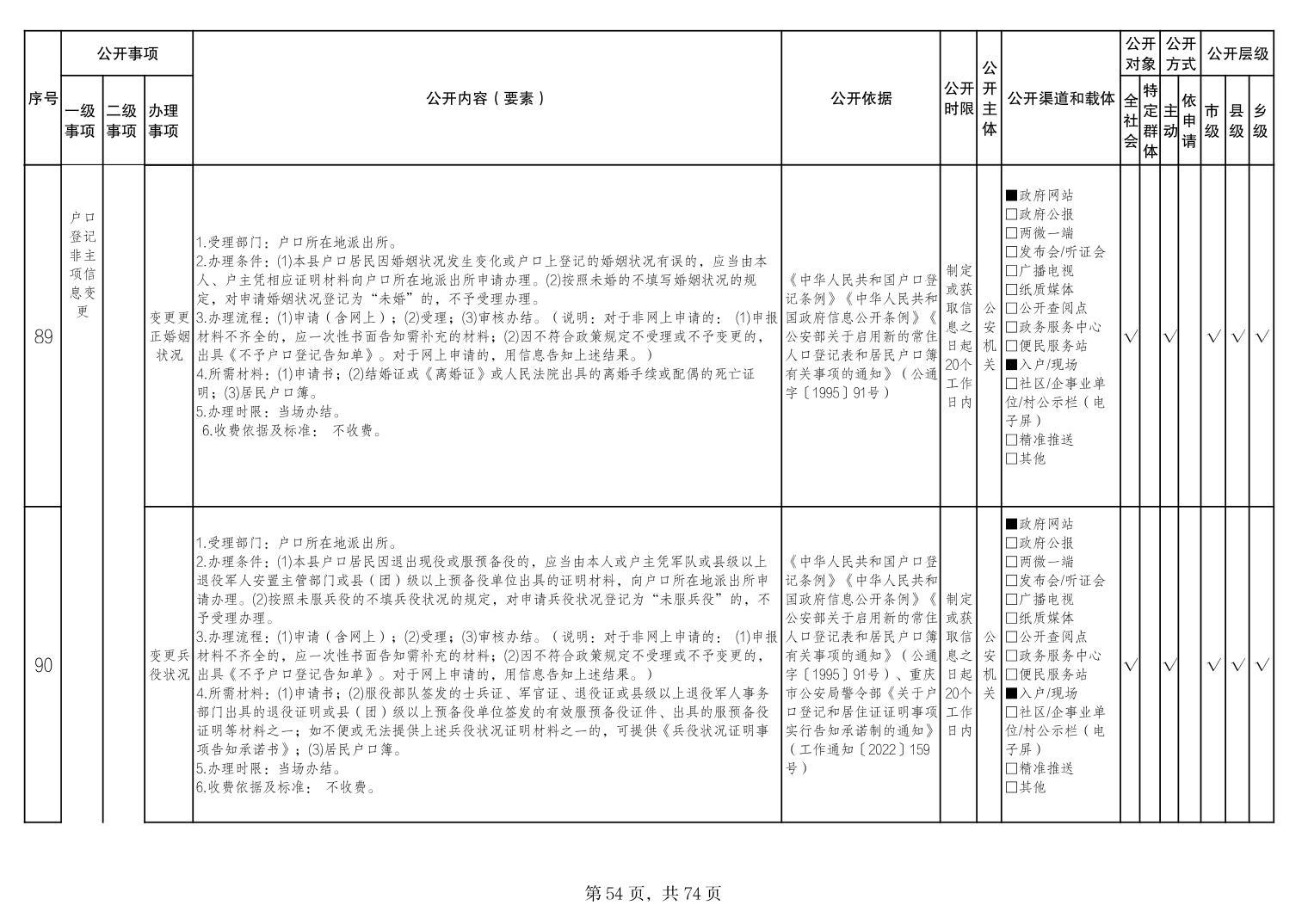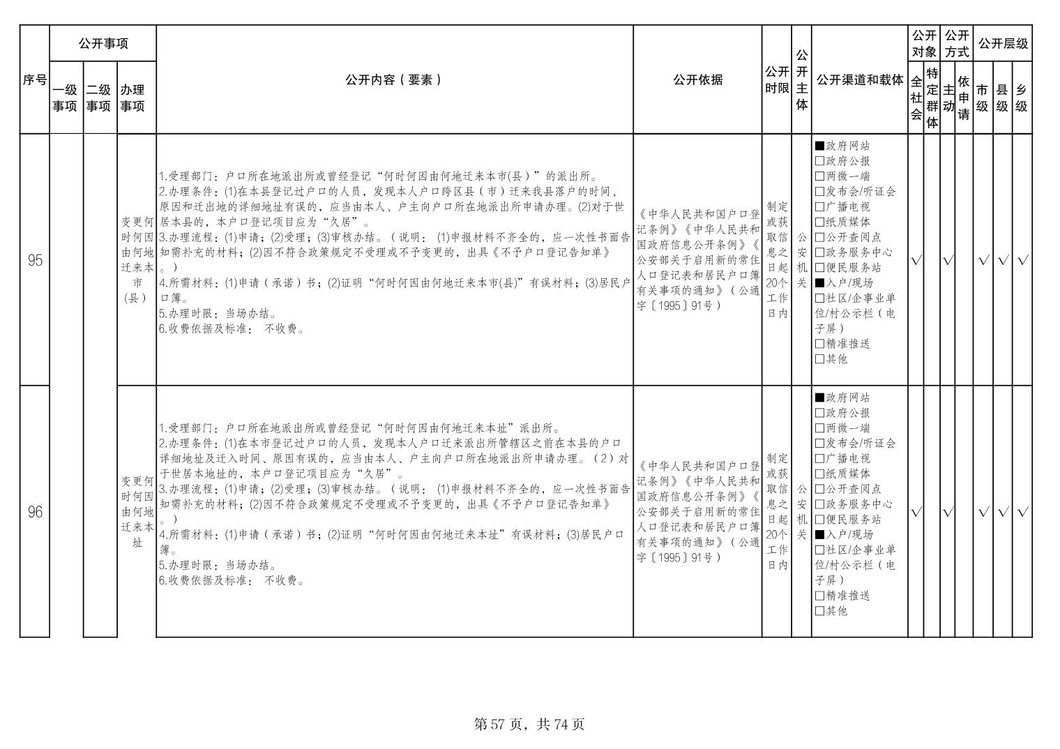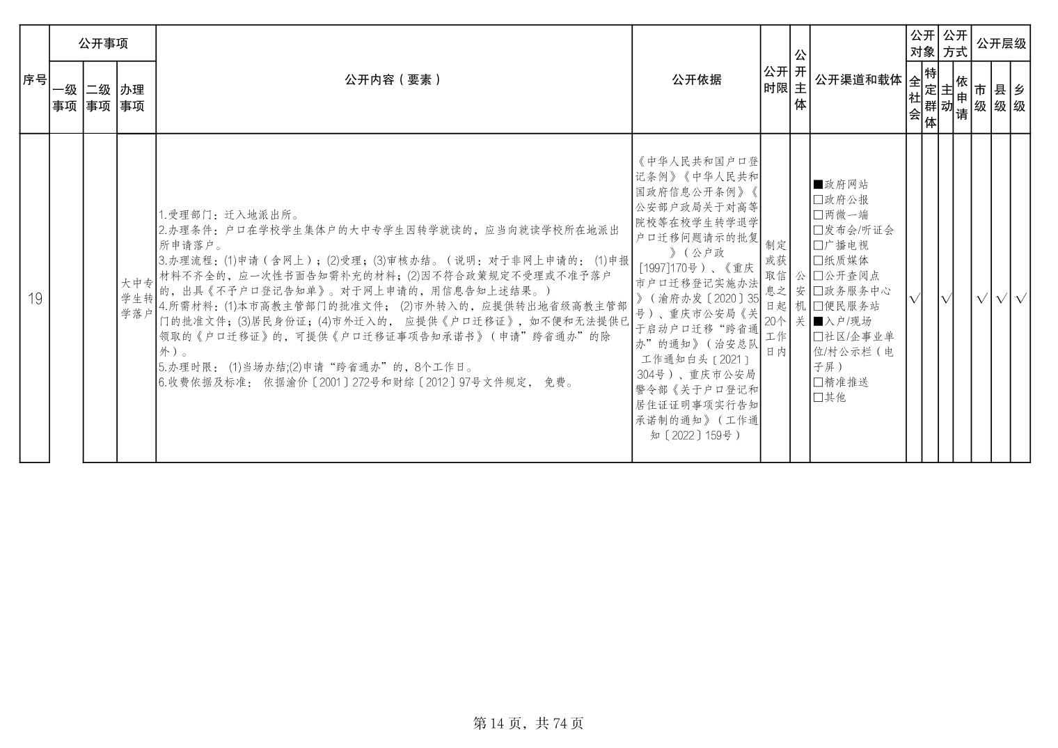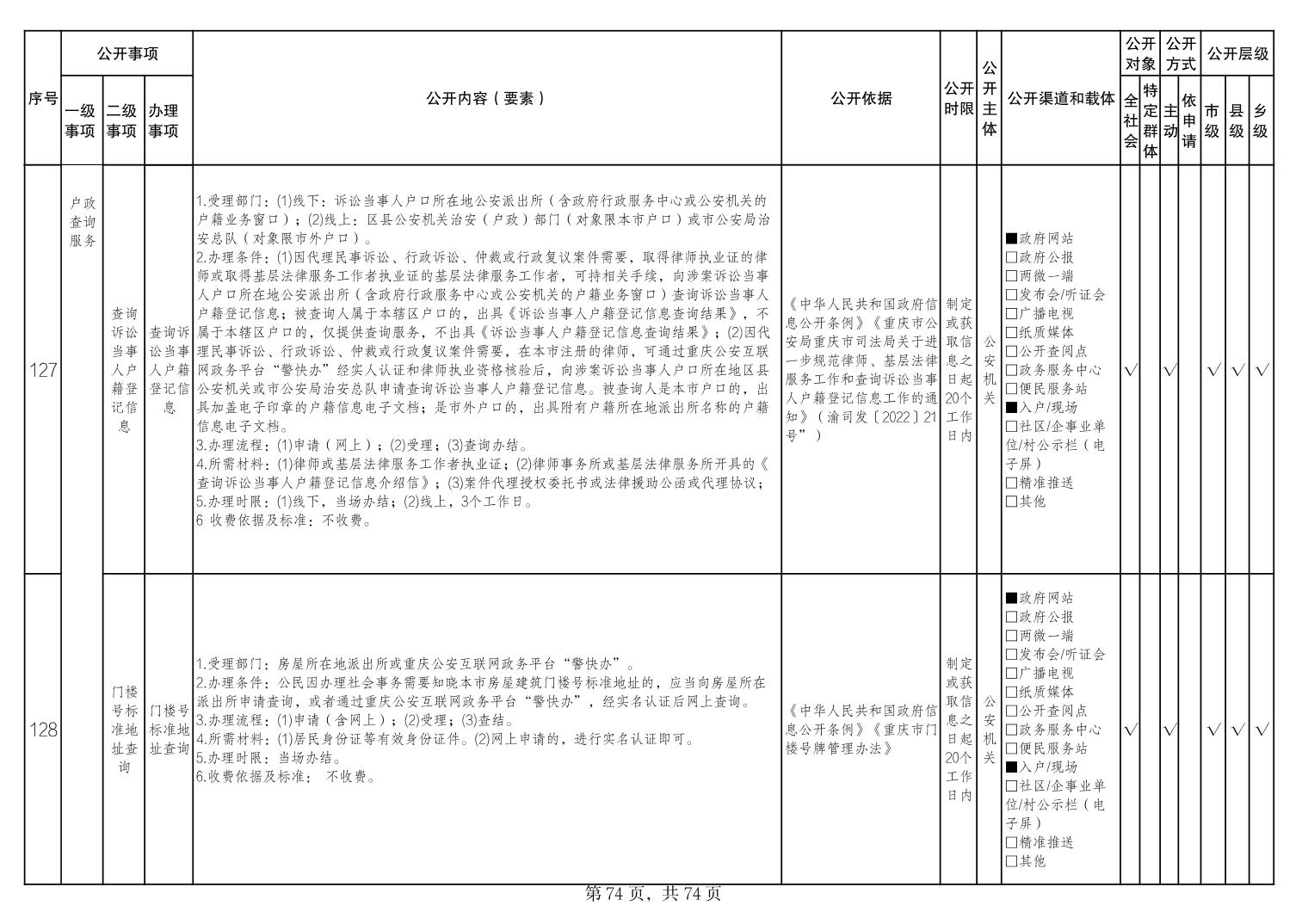 重庆市丰都县户籍管理领域基层政务公开标准目录