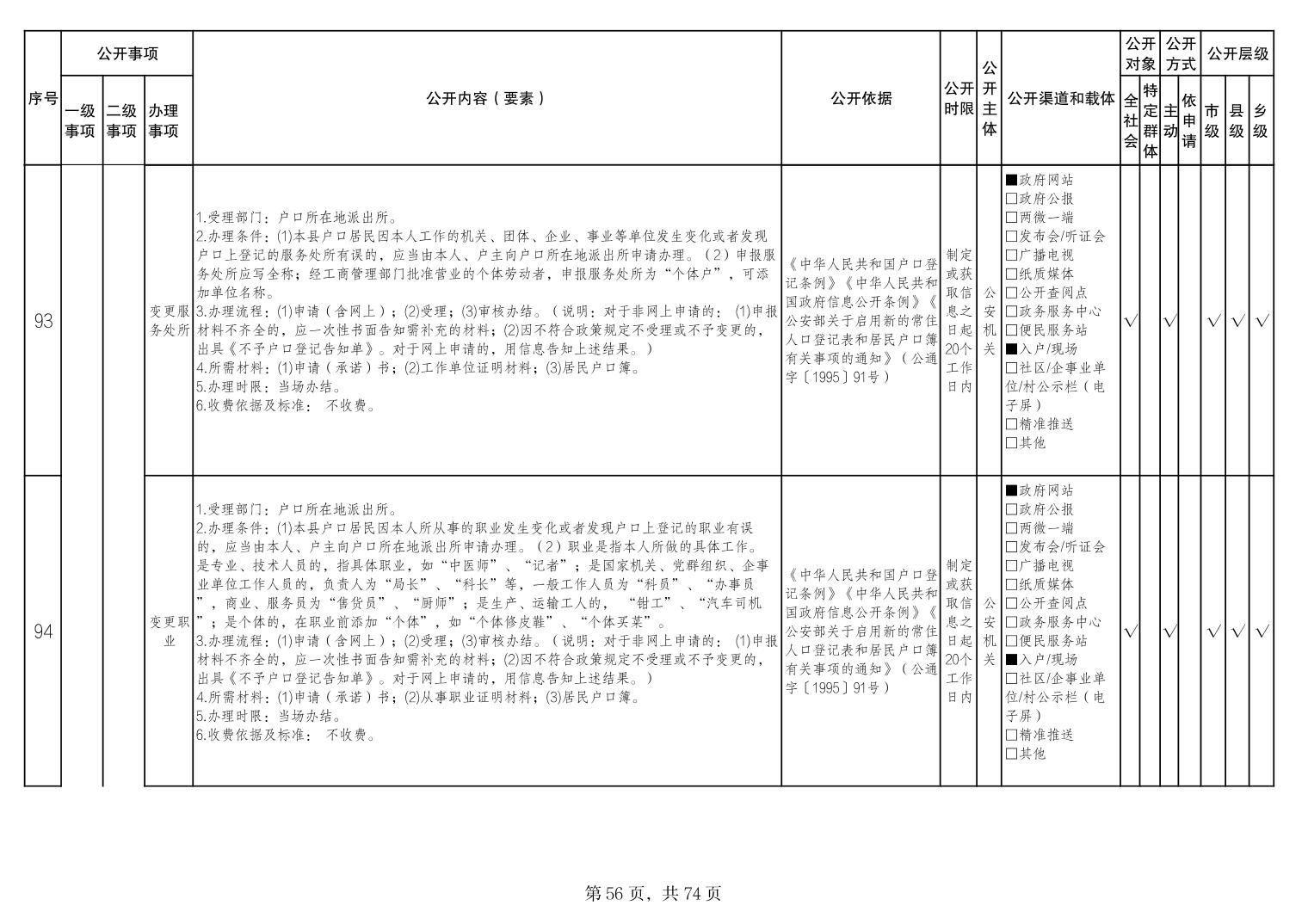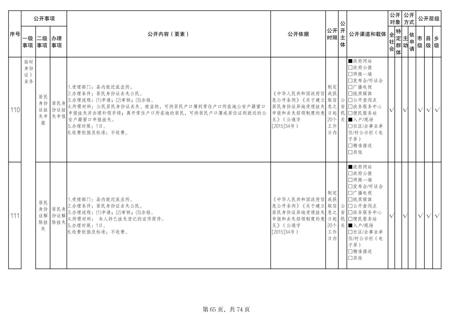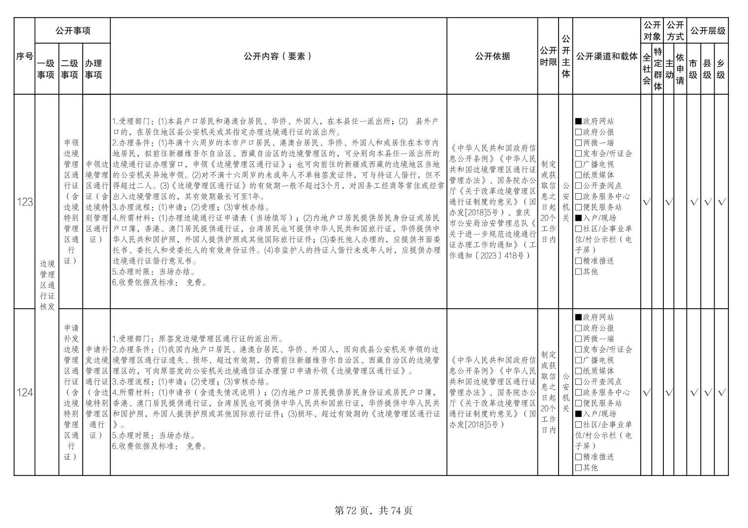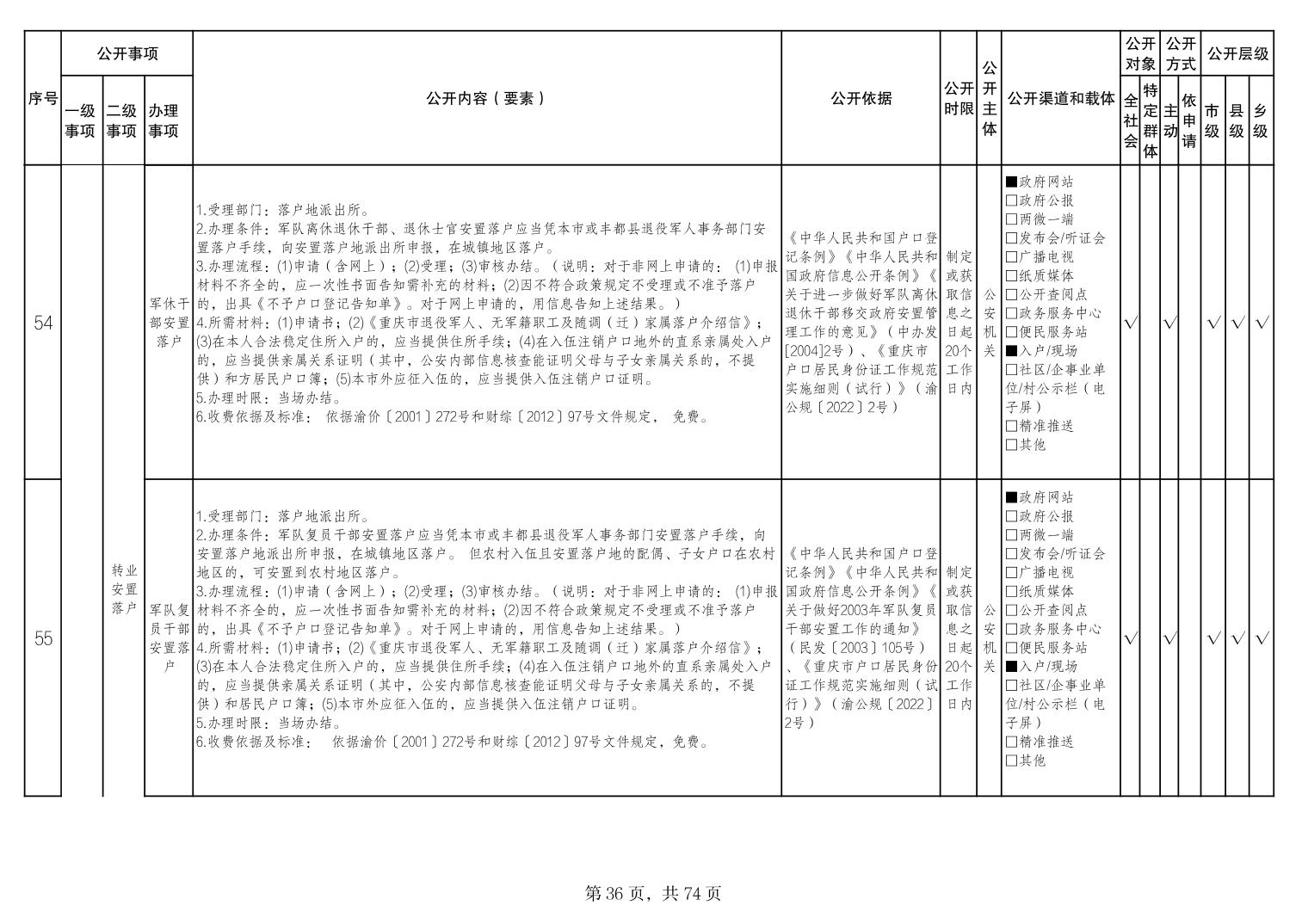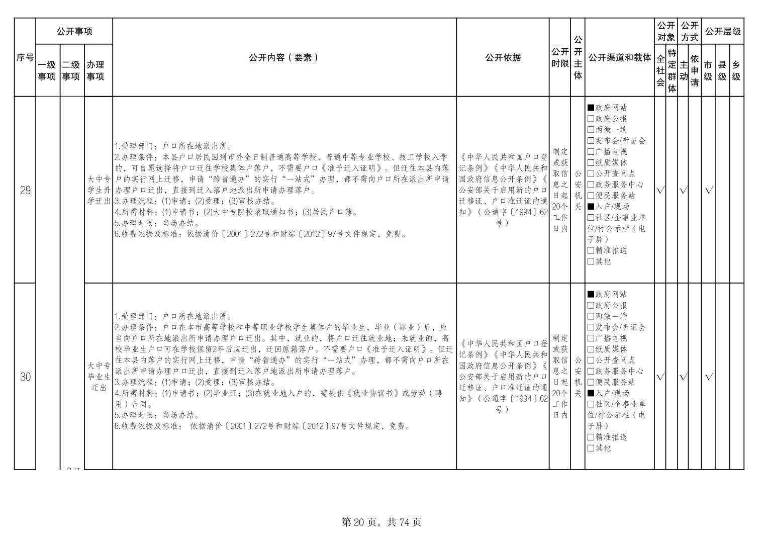 重庆市丰都县户籍管理领域基层政务公开标准目录