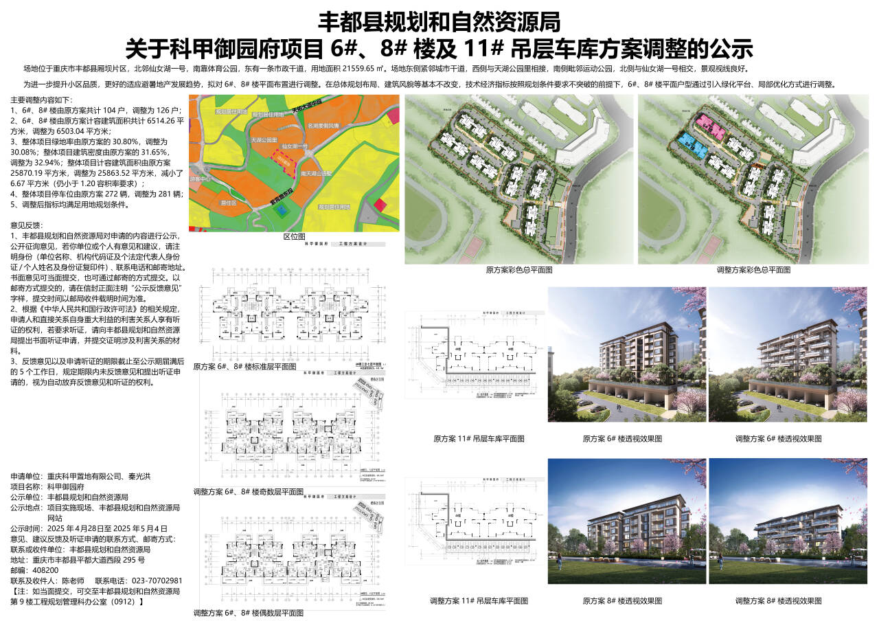 丰都县规划和自然资源局关于科甲御园6#、8#楼及11#吊层车库方案调整的公式