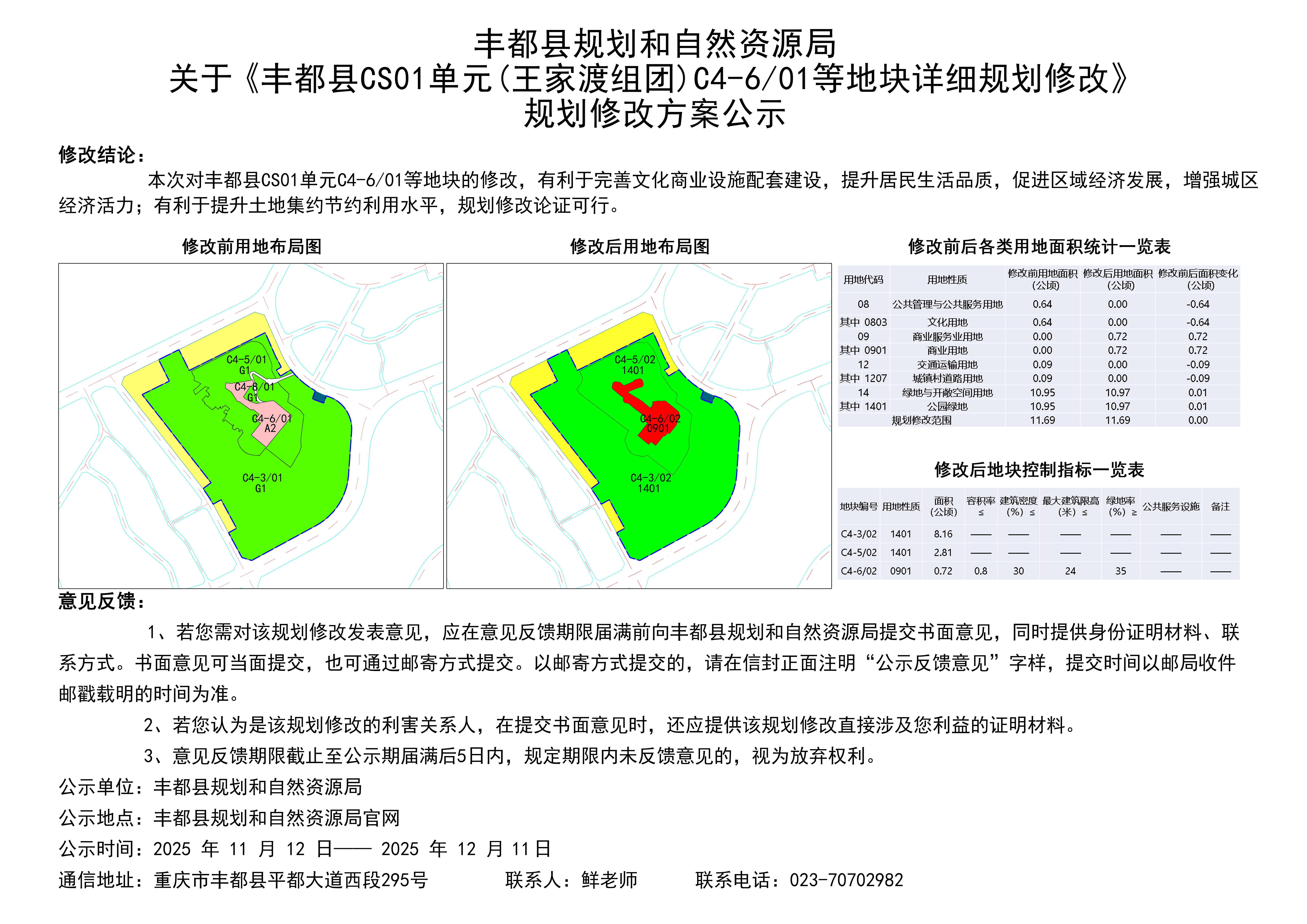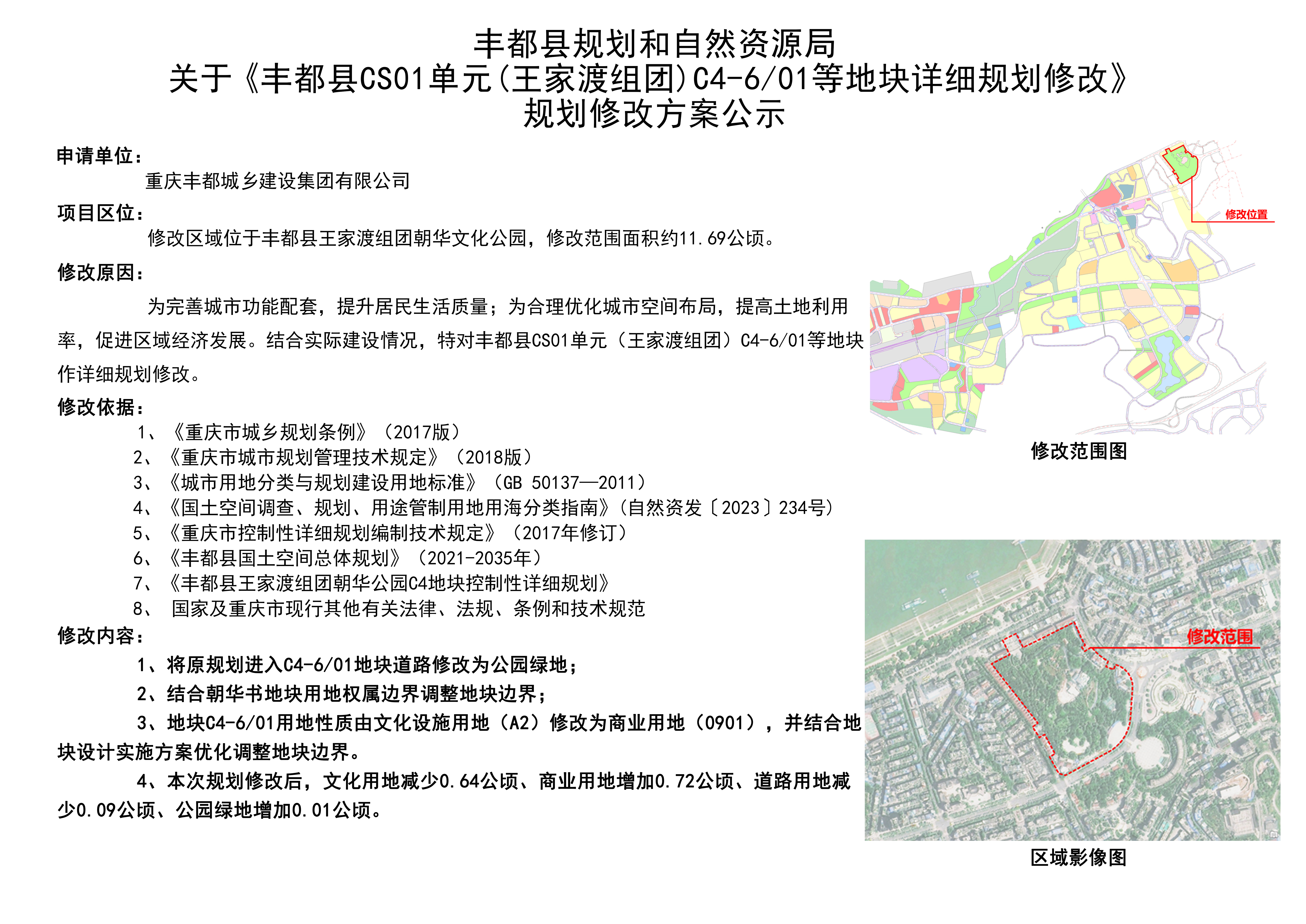 丰都县规划和自然资源局关于《丰都县CS01单元(王家渡组团)C4-601等地块详细规划修改》规划修改方案公示