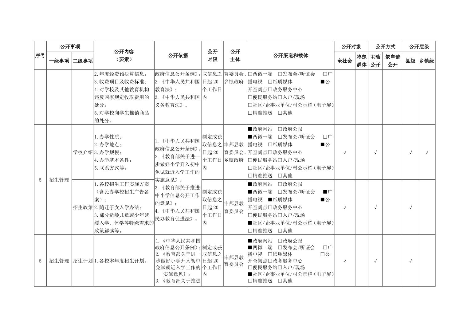 义务教育领域基层政务公开标准目录(2026年版)