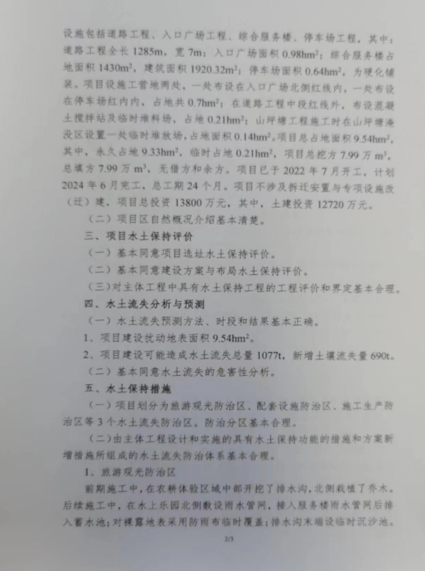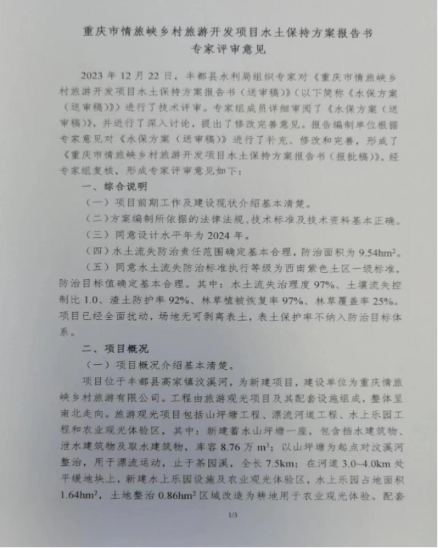 2. 重庆市情旅峡乡村旅游开发项目水土保持方案报告书专家评审意见