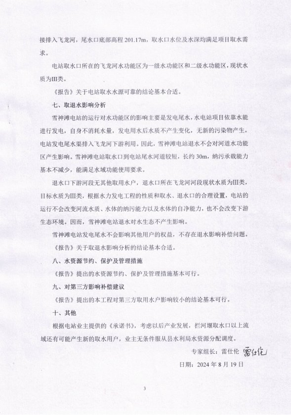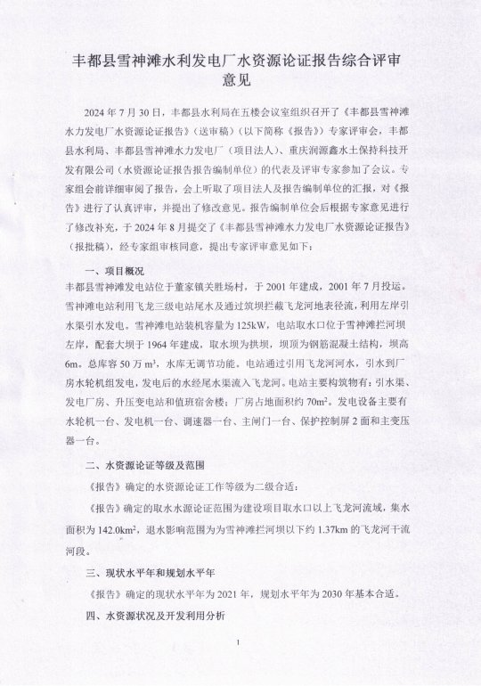 附件:丰都县雪神滩水力发电厂水资源论证报告综合评审意见