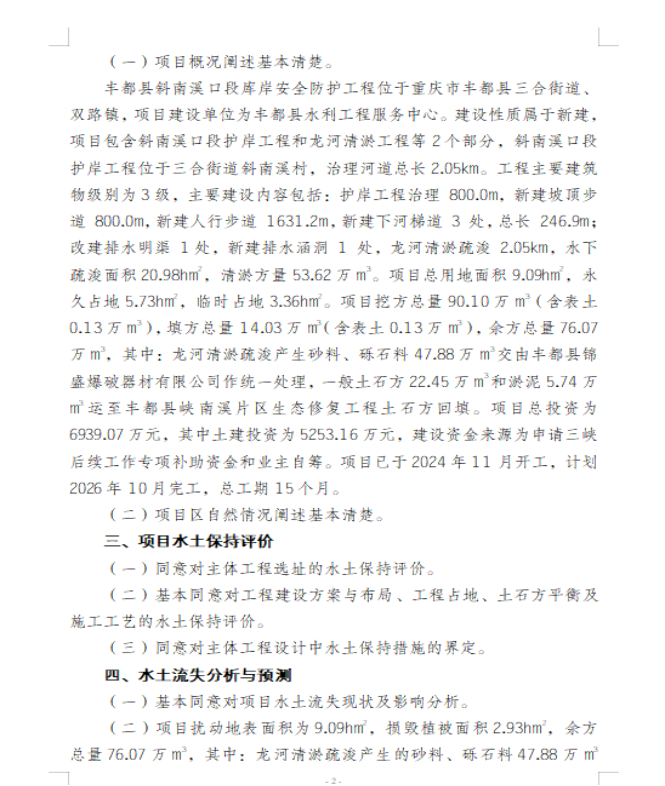 2.丰都县斜南溪口段库岸安全防护工程水土保持方案报告书专家评审意见