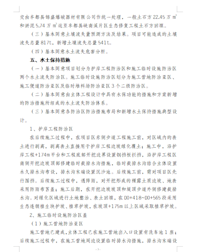 (五)基本同意水土流失防治分区和分区防治措施体系。
