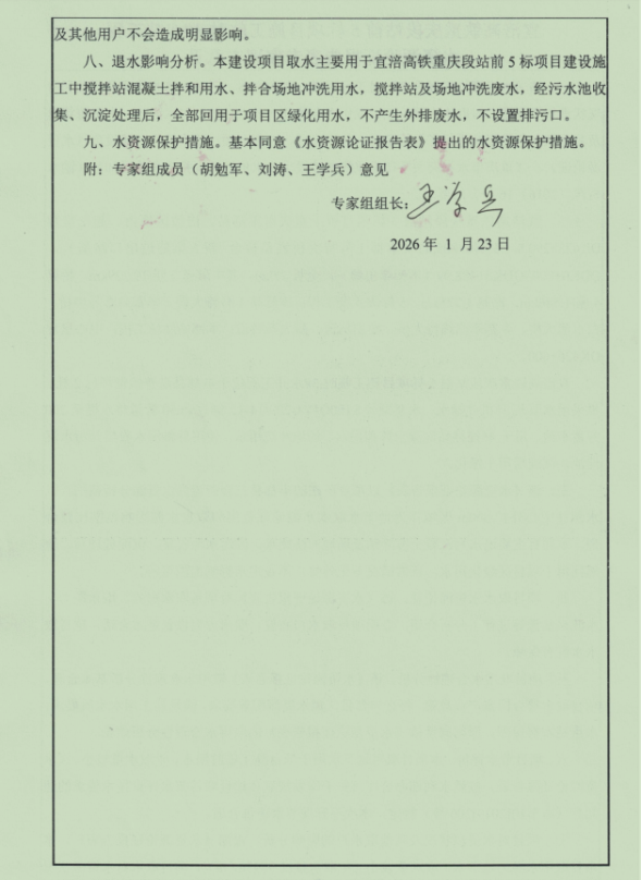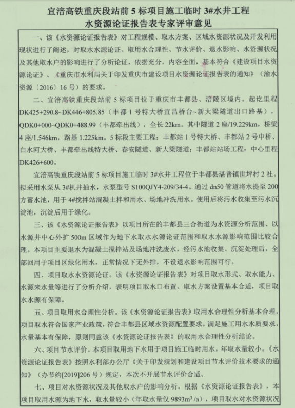 附件:宜涪高铁重庆段站前 5 标项目施工临时 3#水井工程水资源论证报告表评审意见