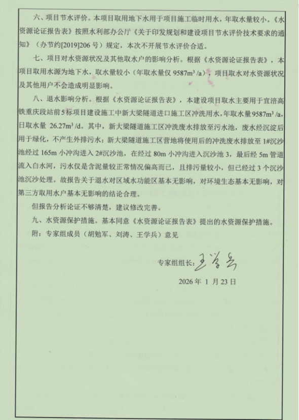 附件:宜涪高铁重庆段站前5标项目施工临时2#水井工程水资源论证报告表专家评审意见