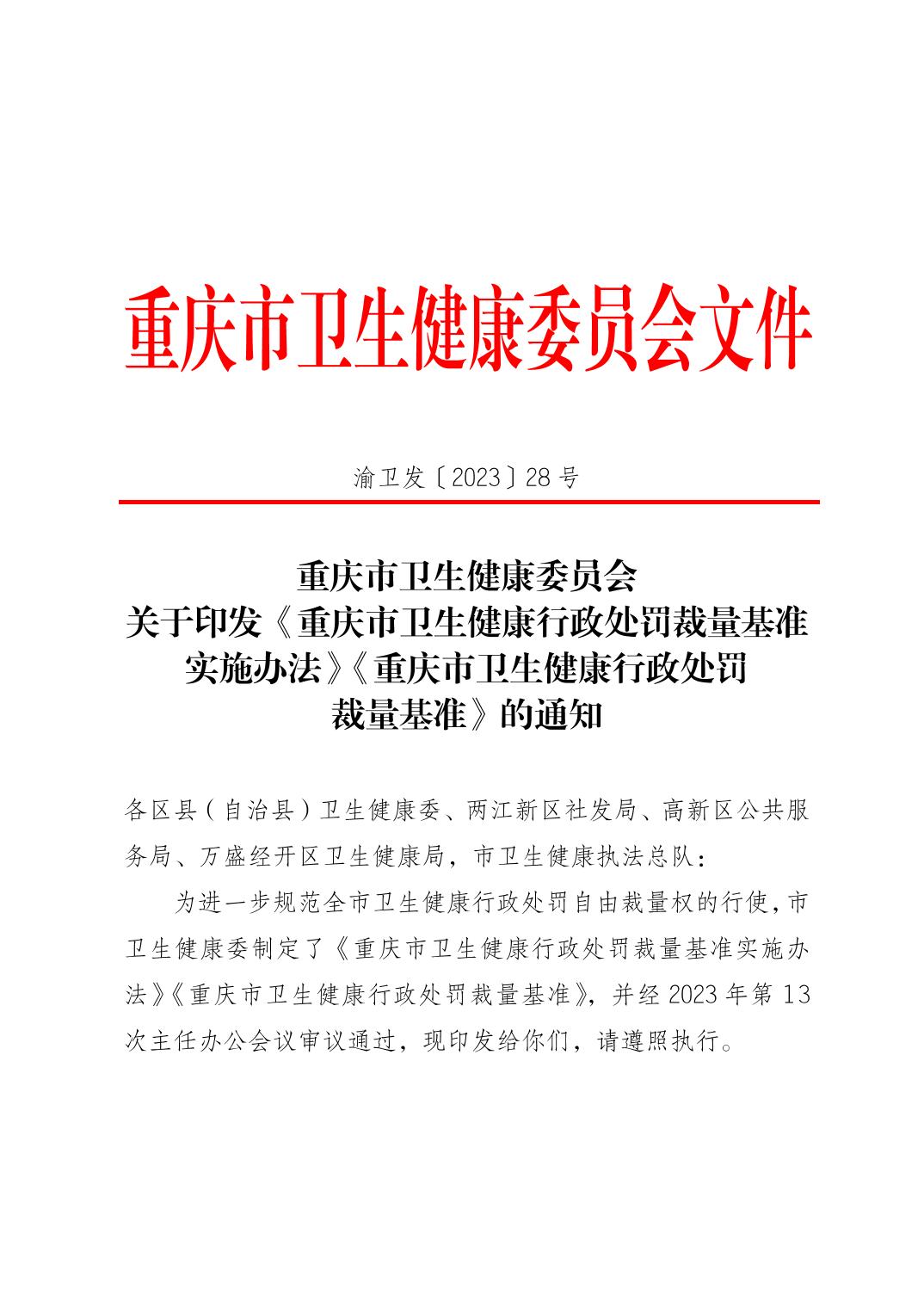 | [ 发文字号 ] | 渝卫发〔2023〕28号 |
