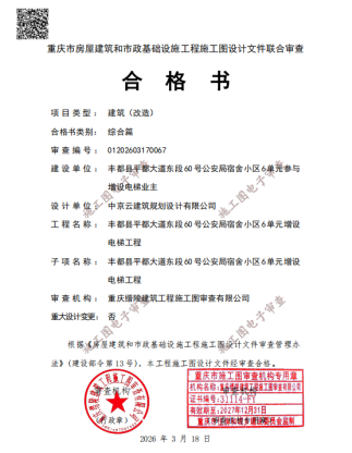 丰都县人民政府三合街道办事处对丰都县三合街道平都大道东段60号6单元申请增设电梯的内容进行公示,公开征询意见,若你单位或个人有意见和建议,请注明身份(单位名称、机构代码证及法定代表人身份证/个人姓名及身份证复印件)、联系电话和邮件地址,2026年3月26日前将建议和意见通过电话或直接提交至丰都县人民政府三合街道办事处311办公室,若未提出的,视为自动放弃权利。