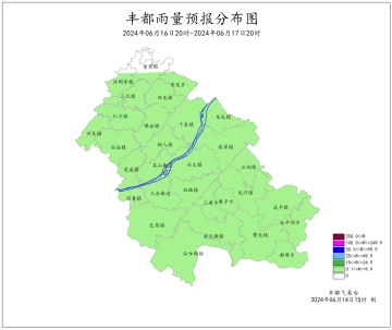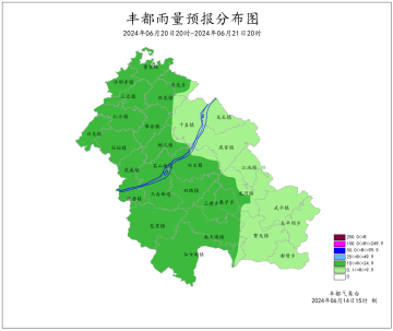 2024年6月8日16时至6月14日16时我县先雨后晴。最大周累计降雨量为31.2mm(白水河)。最低气温11.2~20.9℃,最高气温22.9~38.0℃。丰都国家基本站周累计降雨量23.9mm,最低气温19.6℃,最高气温33.1℃。
