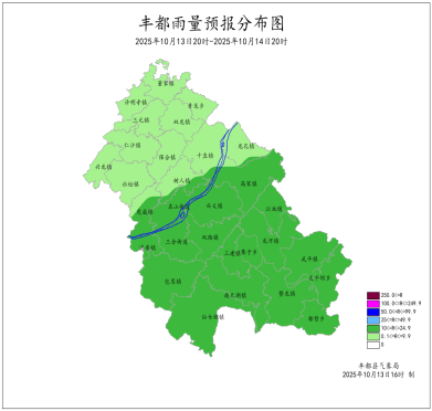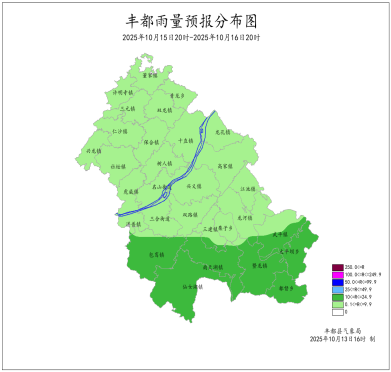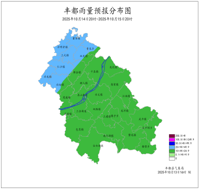 2025年10月12日16时至10月13日16时我县中到大雨,局地暴雨。最大降雨量为81.1mm(都督沙坪村);最低气温11.4 (仙女湖南天湖景区)~19.9℃,最高气温17.7~33.5℃(高家镇(航道))。武平出现7级大风,极大风速14.5米/秒(武平峰子山,12日18时)。丰都国家基本站雨量25.0mm,最低气温18.1℃,最高气温31.0℃。