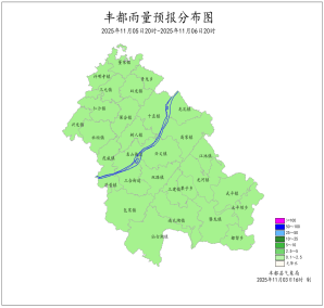 2025年11月2日16时至11月3日16时我县阴天有小雨。最大降雨量为0.2mm(兴龙村);最低气温5.9 (南天湖景区)~15.9℃,最高气温8.0~20.8℃(三元)。丰都国家基本站最低气温14.0℃,最高气温18.3℃。