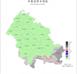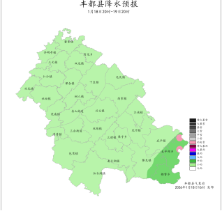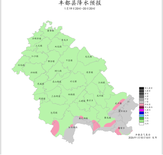 2026年1月17日16时至1月18日16时我县多云间晴。最低气温3.6 (包鸾)~14.7℃,最高气温7.7~22.7℃(青龙)。丰都国家基本站最低气温7.7℃,最高气温16.5℃。