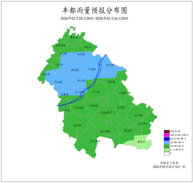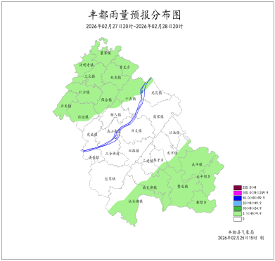 2026年2月24日16时至2月25日16时我县阴天有小雨。最大降雨量为1.3mm(兴义水天坪);最低气温3.9 (南天湖景区)~13.4℃,最高气温9.0~24.8℃(兴龙)。丰都国家基本站雨量0.9mm,最低气温11.3℃,最高气温20.6℃。